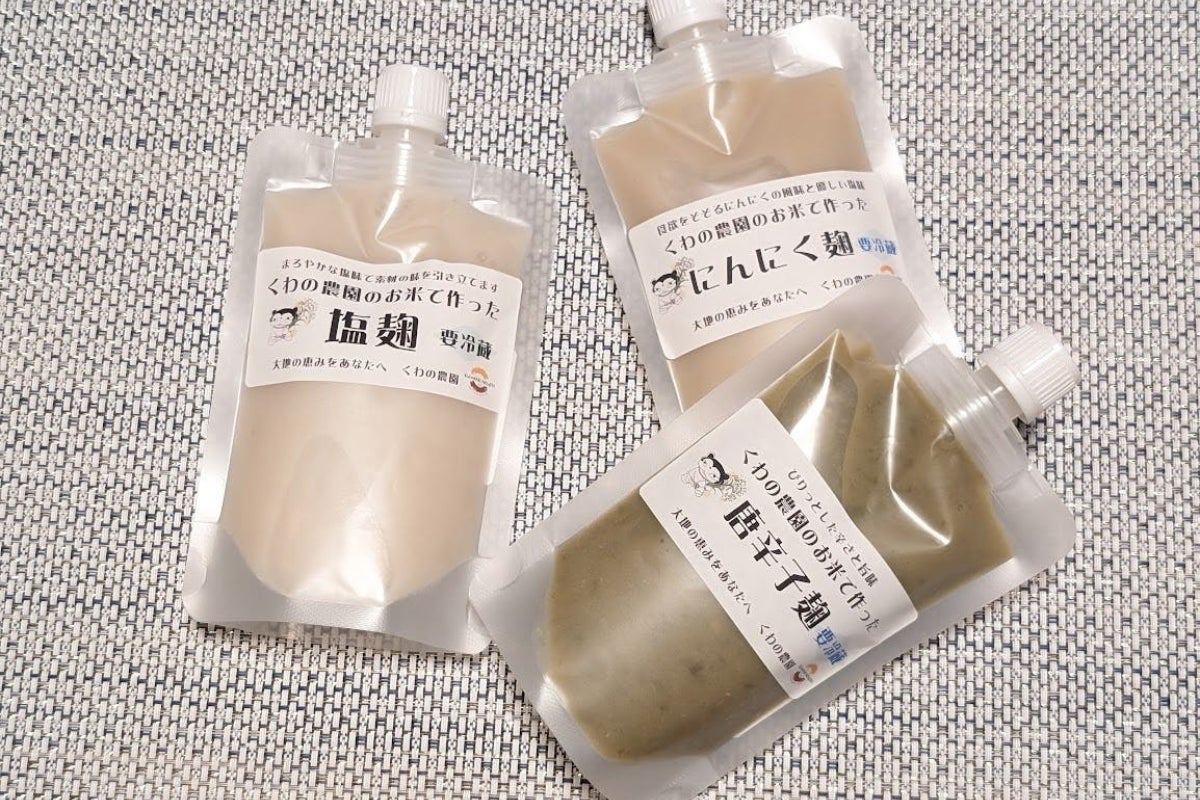 17代続く専業農家くわの農園の「プレミアム麹調味料」は栽培、加工まで一貫して行うことで誕生した極上のひと品。「普段使い」から「おもてなし」でも重宝される、試行錯誤の末に完成させた特徴の異なる塩麹・にんにく麹・唐辛子麹、3種の味わい。忙しい日々の食卓に家族の笑顔が広がる、小さな幸せをお届けします。