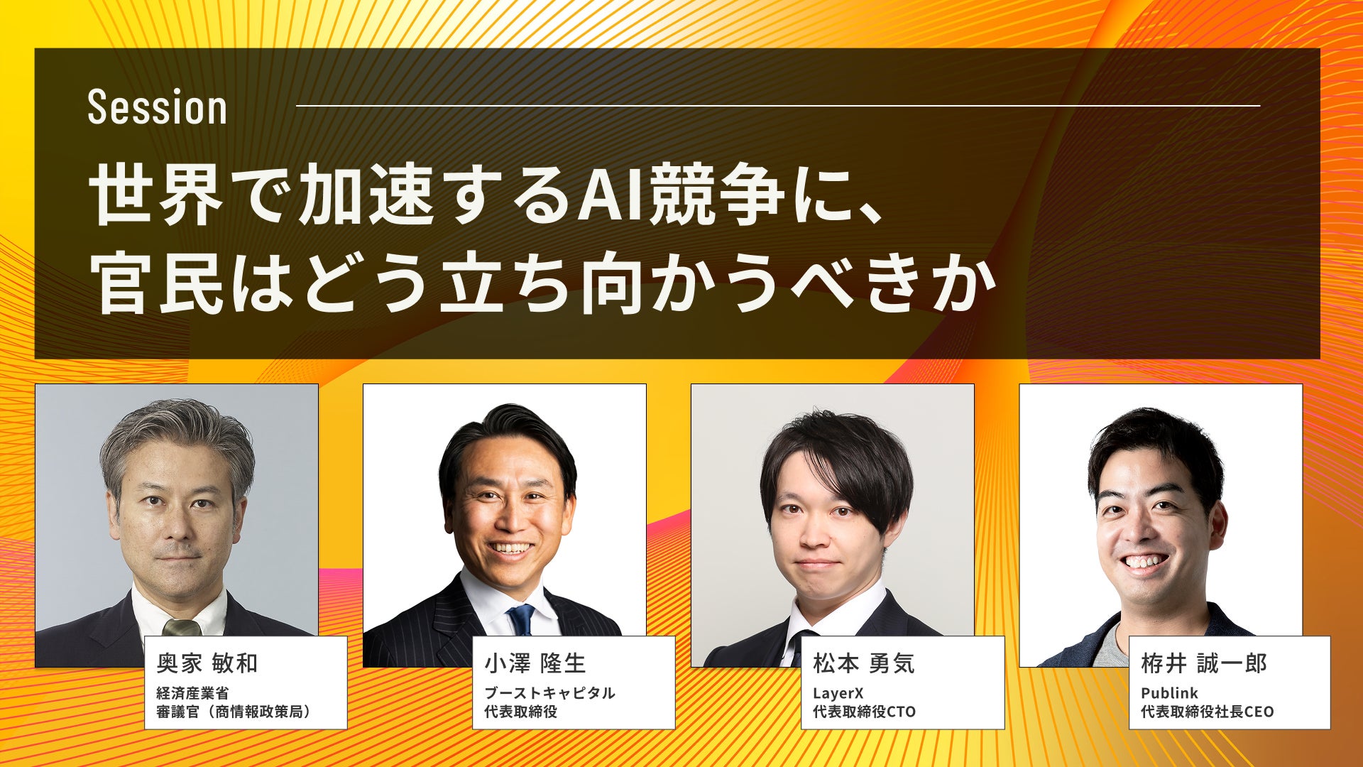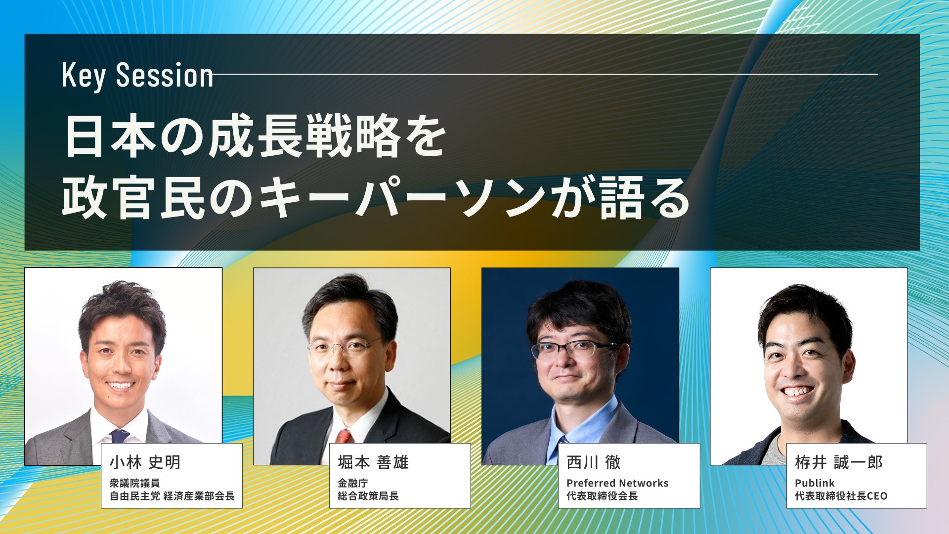 小林 史明 衆議院議員、Preferred Networks 西川 徹 代表取締役会長、経済産業省 奥家 敏和 審議官、ブーストキャピタル 小澤 隆生 代表取締役等、政官民のキーパーソンが登壇