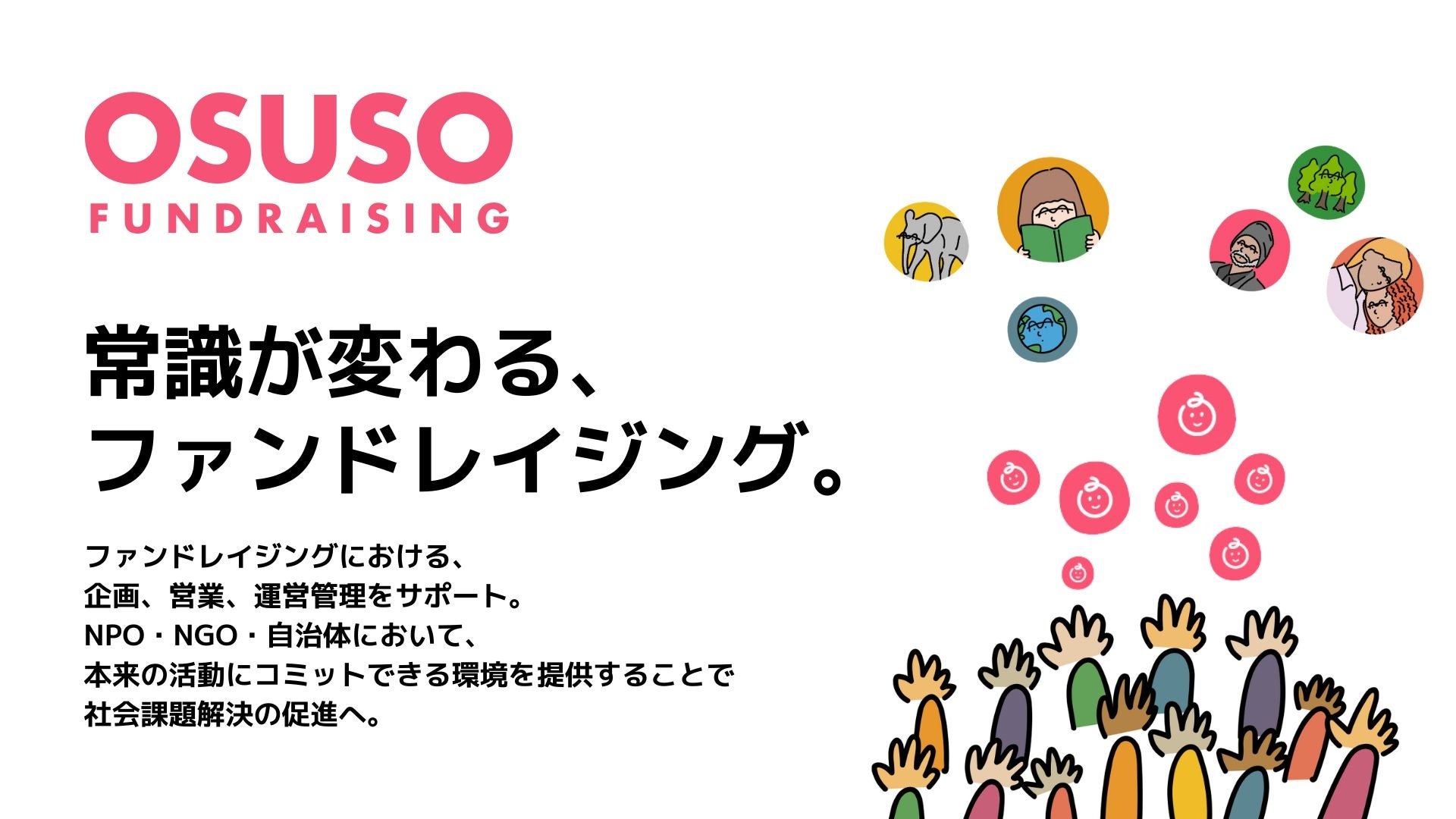 現在OSUSOでは、NPO・NGO向けのサービス「OSUSO FUNDRAISING(おすそ ファンドレイジング」、企業向け従業員参加型SDGsサービス「OSUSO CLUB(おすそクラブ)」を展開しています。