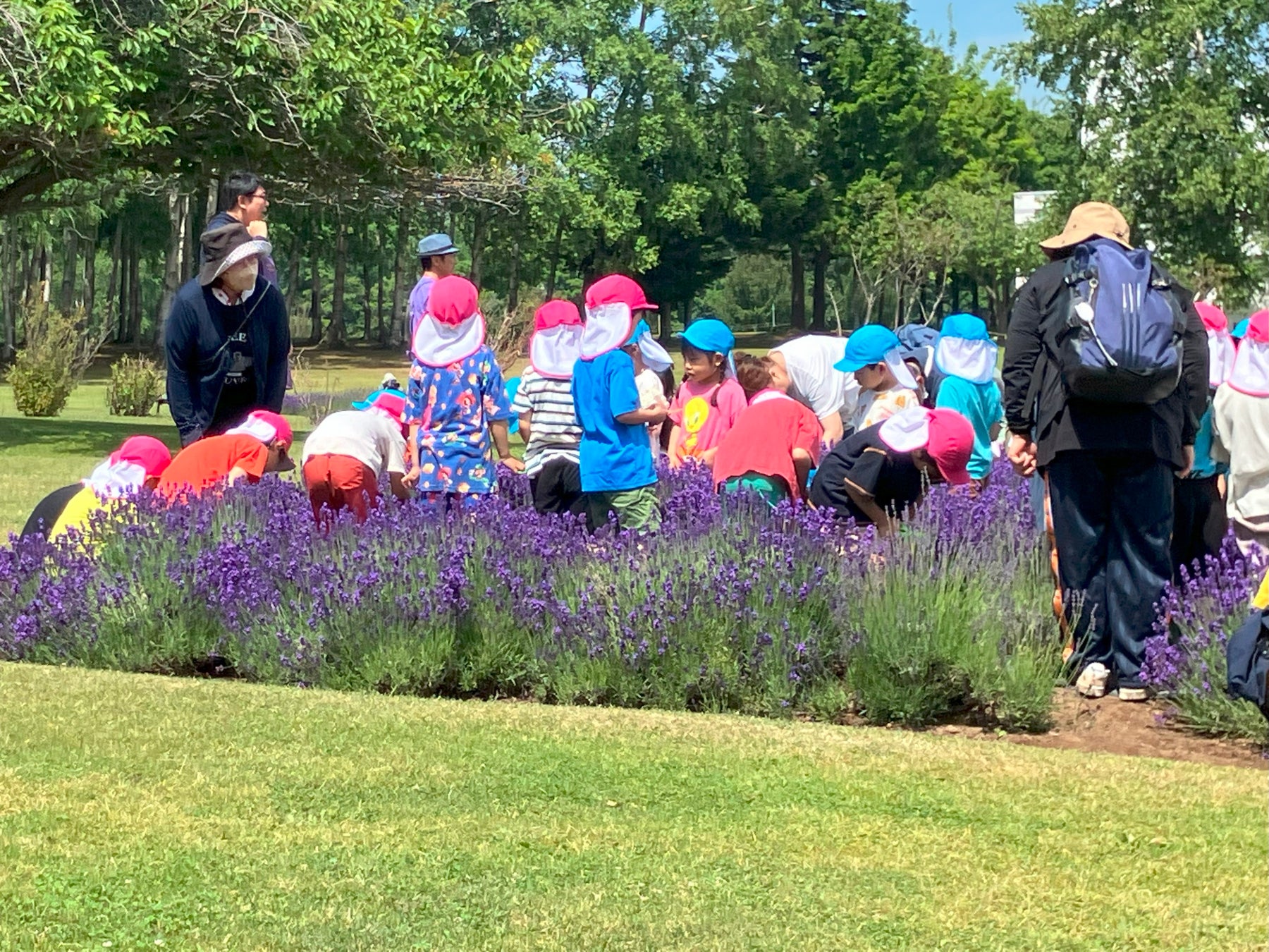 地域の保育園児を招待し①ラベンダー刈り取り体験の説明②ラベンダー刈り取り体験