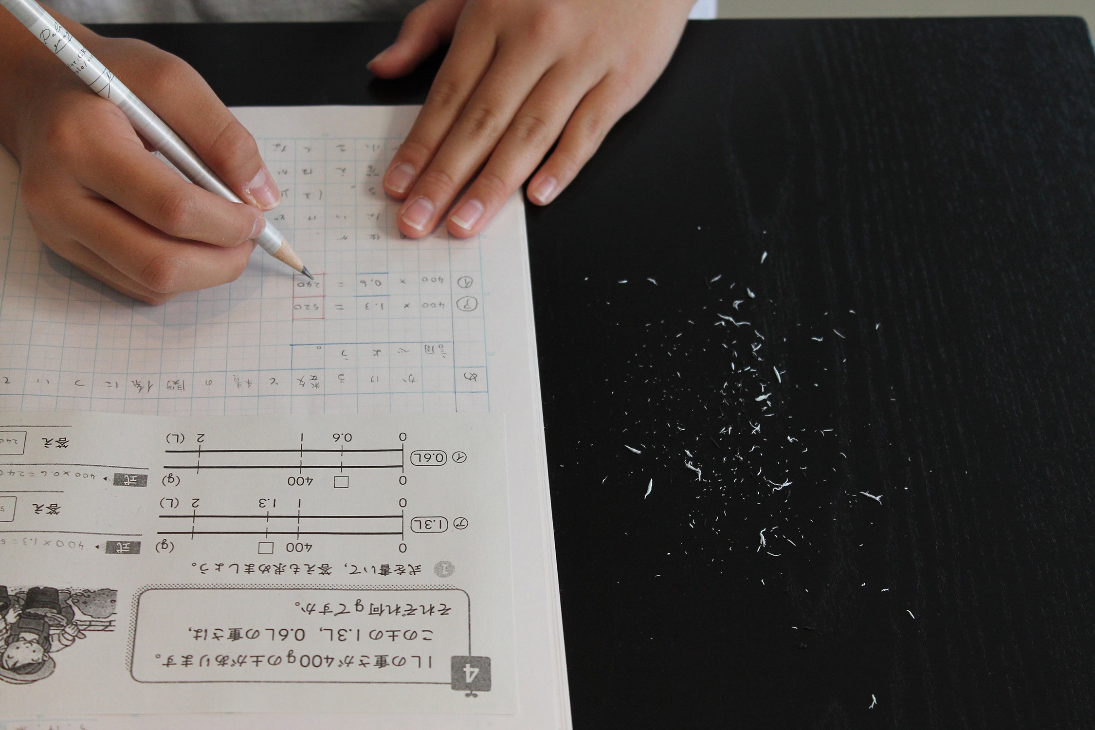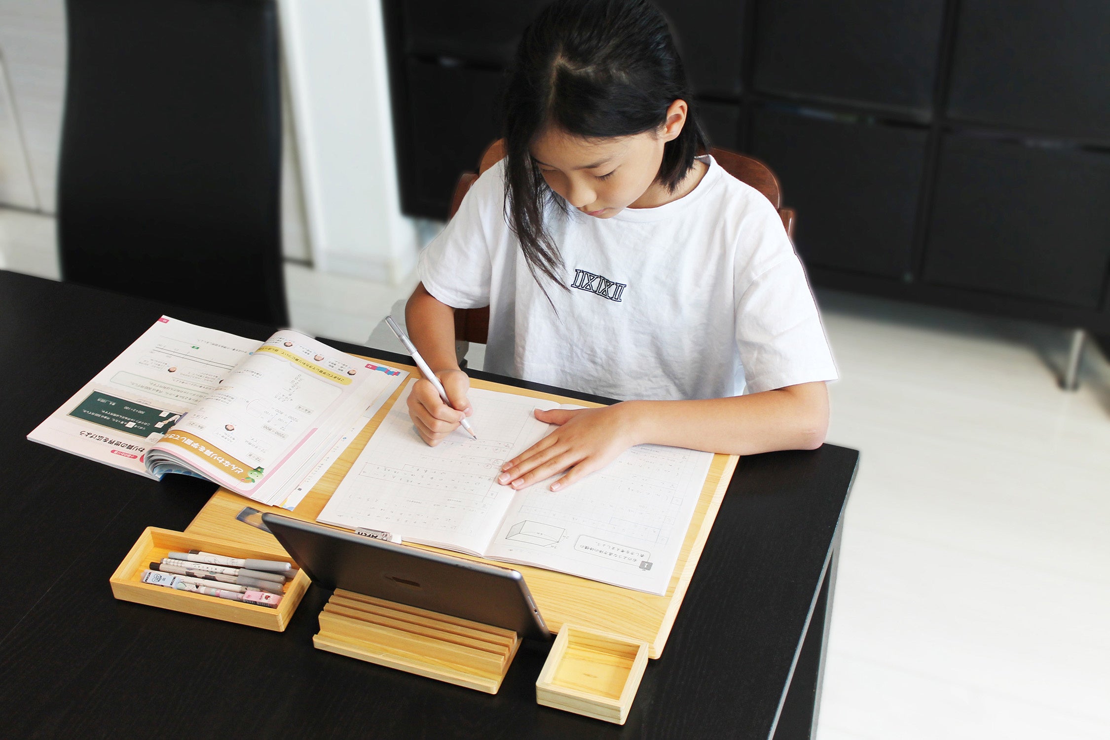angelette@のワーキングボードは、社内での打ち合わせの前に、小学生の子を持つ何人かでいつものように談笑していると、そのうちの一人が「うちではリビングで勉強させているんだけど、食事の用意ができた時に消しゴムのカスとかを片付けるのが大変でさ〜困ってるんだよね〜」と。
