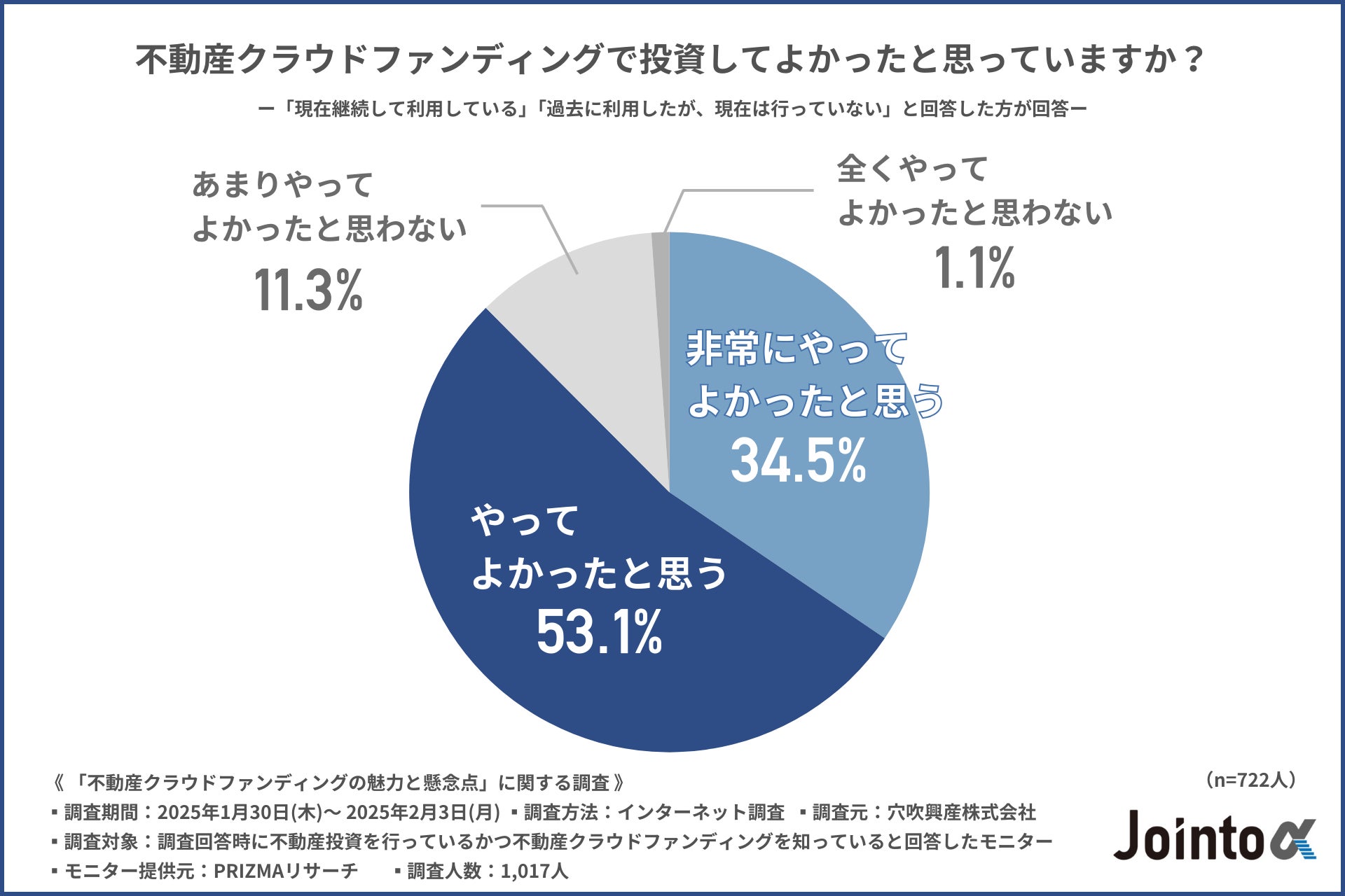 実際に、不動産クラウドファンディングに投資した方はどの程度満足しているのでしょう。