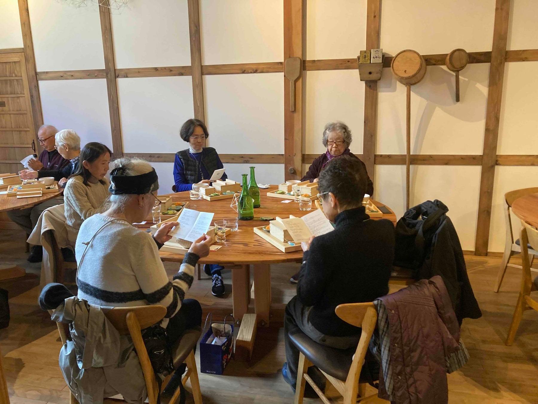 西山酒造場での体験後、お客様からは、「蔵見学では、蔵人の方が酒への愛情を持ちながら、酒造りに取り組まれていると感じた。」、「鼓傳での食事は、体によい素材が多く使われているからか、お料理が体の中にすーっと入っていく感覚だった。白砂糖不使用だが、味が薄いわけではなく、発酵調味料を使用することにより、より食材の素材のうまみを感じることができた。」、「鼓傳について、昔の建物を無駄にせず、工夫して建てられているという話が印象的であった。」との感想をいただきました。