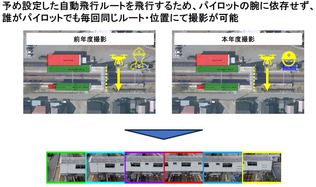 株式会社旭テクノロジー(本社:兵庫県姫路市、代表取締役:幸長 保之、以下「ATCL」)は、西日本旅客鉄道株式会社(本社:大阪府大阪市、代表取締役社長:倉坂 昇治)と駅施設の検査業務を効率化する検討を行いました。本検討では、駅舎屋根・外壁・跨線橋などを対象に、鉄道特有のルールを遵守した上で、ドローンの自動航行により同一ルート・同一角度で繰り返し撮影できる再現性の高い撮影と画像解析による劣化箇所の自動抽出の有効性を検証しました。
