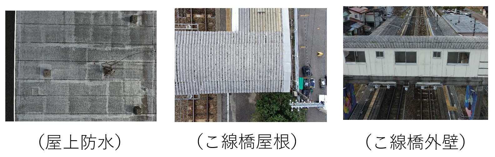 本検証では、駅設備ごとの点検項目・判定基準を踏まえ、撮影条件を整理した上で、ドローンの自動航行により建物上空から屋根や壁面といった対象物を撮影し、画像解析を行うことにより劣化箇所を抽出する一連の手順を実施しました。あわせて、自動航行によるデータ収集が点検業務の効率化や同一ルート・同一角度での撮影再現性の確保に有効であるか、さらに画像解析に必要な品質を満たした画像が取得できているかを検証しました。