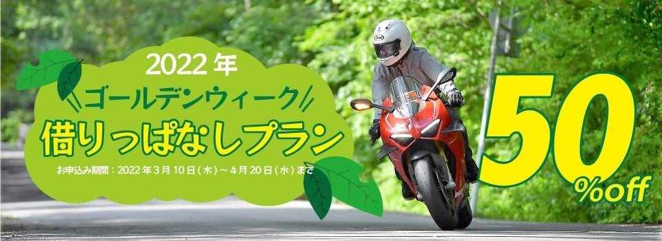 オートバイの全国レンタルサービス『レンタル819』は、2022年4月28日までのお貸出~5月6日からのご返却の8日間以上でレンタルバイクのご利用料金が50%OFFになる、毎年好評の「ゴールデンウィーク借りっぱなしプラン」を今年も実施いたします。ご予約は2022年3月10日~4月20日まで。