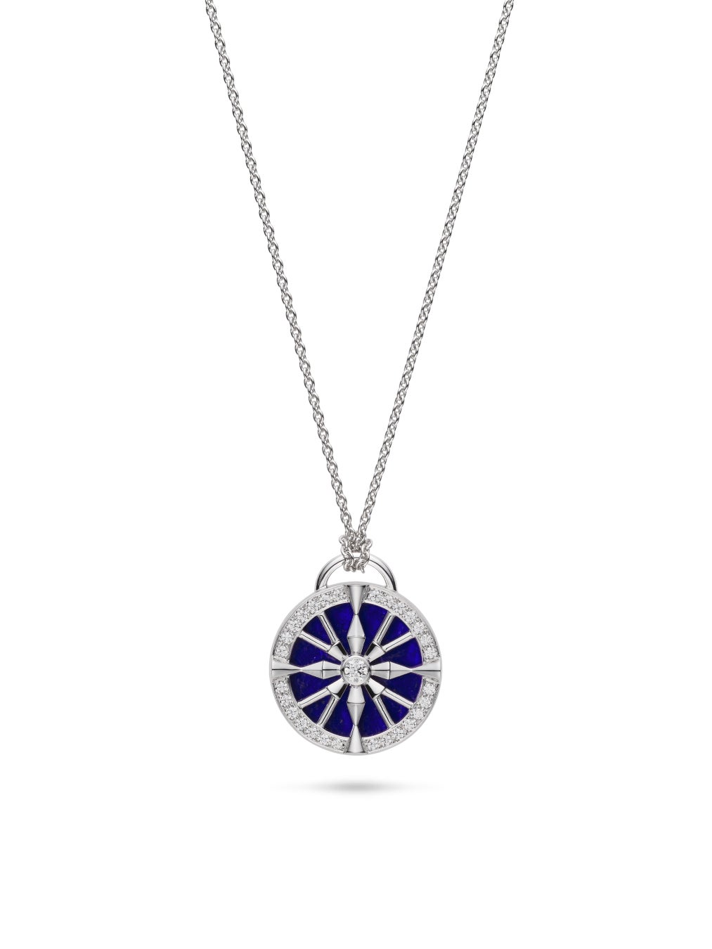未来を照らすお守りのような存在として日常を華やかに彩るコレクションに、新たに加わったのはラピスラズリを主役にしたペンダント。深遠なブルーの色彩美と8本の矢に共鳴するダイアモンドの輝きは、身に着ける人に幸運を呼び寄せます。