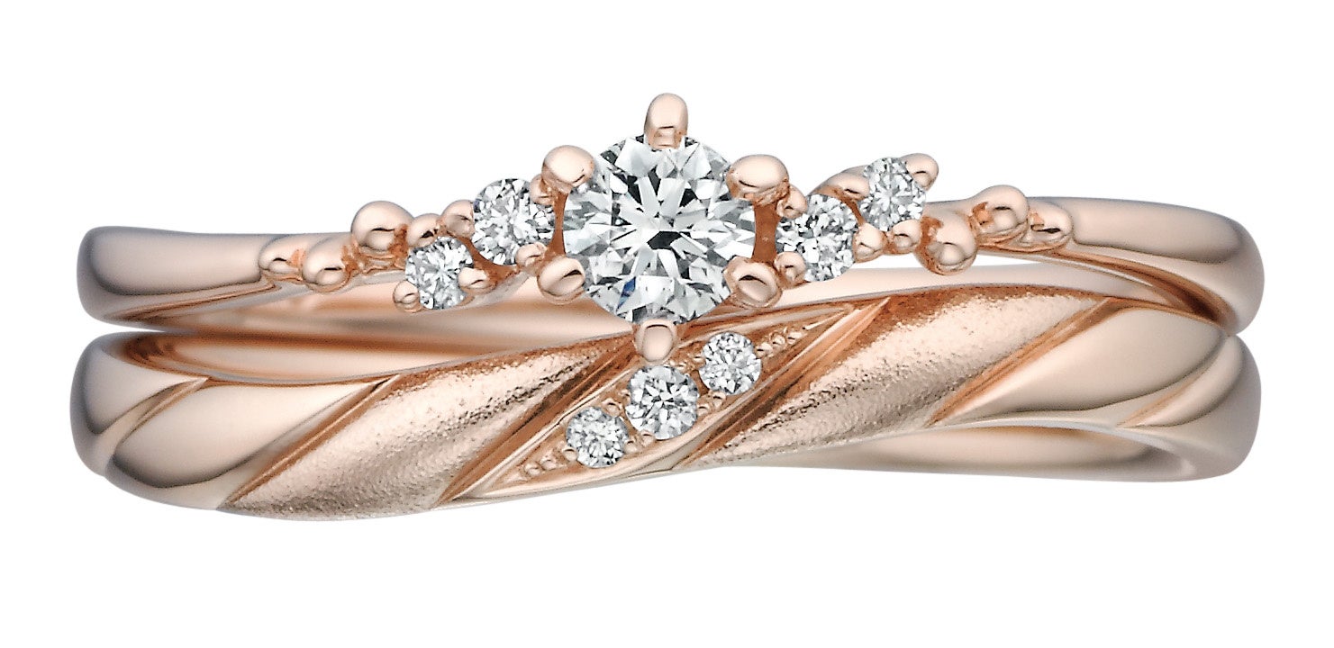 (上)エンゲージリング K18PG センターダイヤモンド 0.1ct G-SIup EX H&C ¥198,000(グレードアップ/0.2ct・0.3ct対応可)