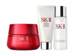 「スキンパワー クリーム」80gの価格でSK-IIを代表する化粧水「フェイシャルトリートメントエッセンス」のミニサイズ、ふき取り化粧水のミニサイズがセットに。