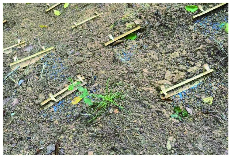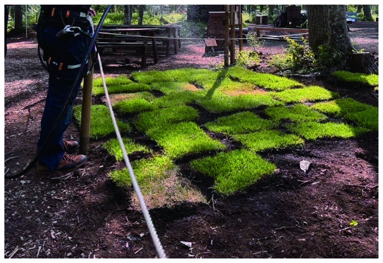 フォレストアドベンチャー・久山では、グランドカバーとして効果のある種を植え、緑化だけでなく、豪雨後の雨水被害を最小化出来る保水力ある地表にする為の取組みとしても進めています。