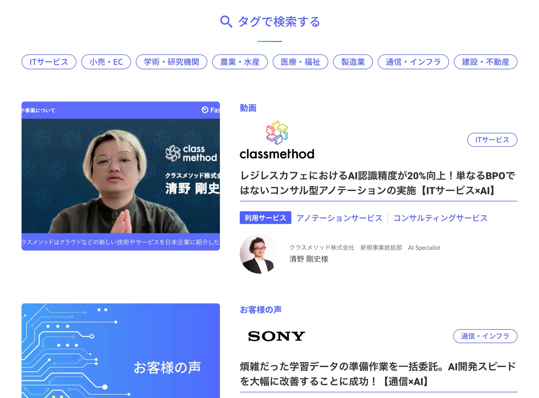 ・利用サービスが一目でわかるため、みたい事例をより探しやすい状態に