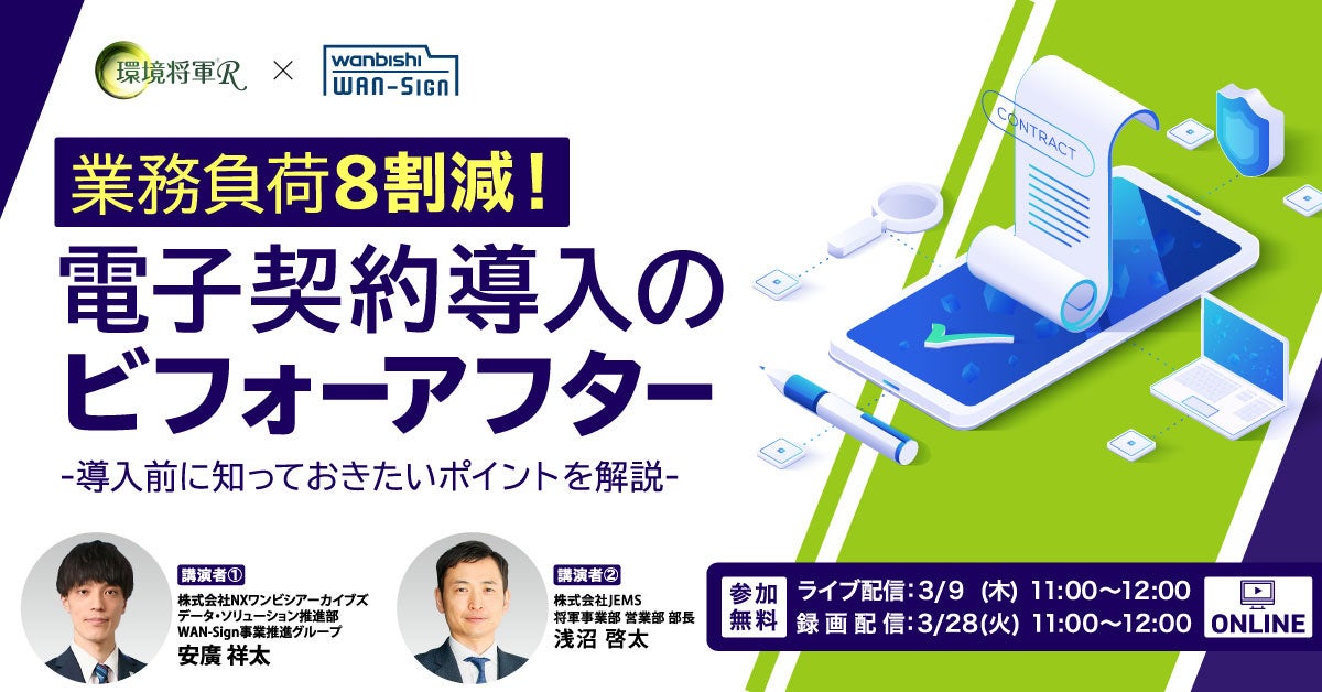【参加無料】廃棄物処理・資源リサイクル業向け「業務負荷8割減!電子契約導入のビフォーアフター」オンラインセミナーを3/9(木)、3/28(火) に開催します