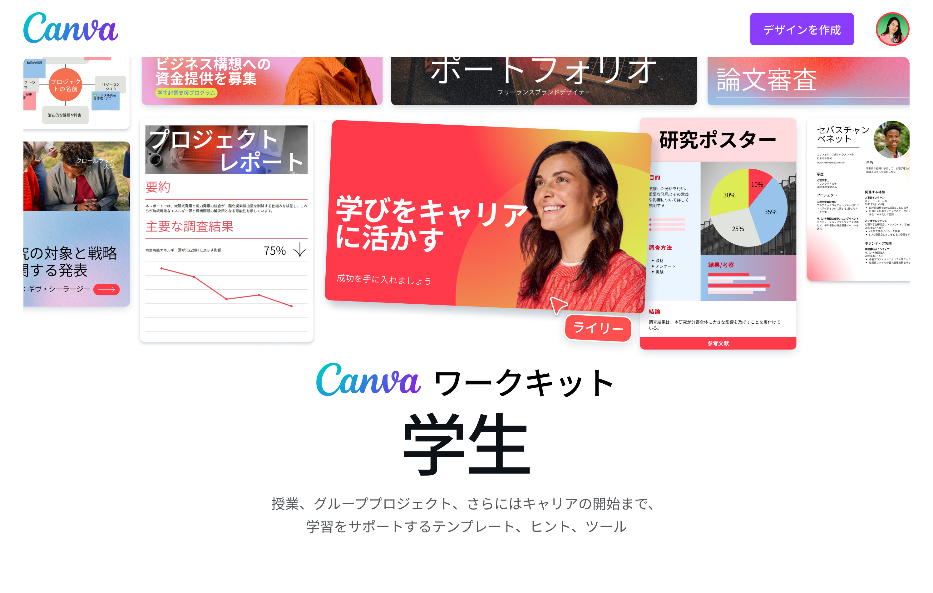Canvaは、さまざまな分野のプロフェッショナルによるあらゆるデザインとコラボレーションのニーズに応える、使いやすさを重視した新世代のワークプレイスソフトウェアを構築しています。ワークキットを継続的に拡張しアップデートしていくことで、Canvaは多様なユーザーコミュニティが、それぞれの目標を達成するために必要なソリューションを、迅速で簡単に、かつ無料で利用できるようにしています。