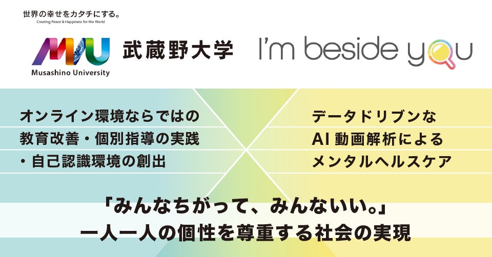 「みんなちがって、みんないい」という言葉で表される、一人一人の個性を認め、それぞれが異なる方法でイキイキと自己実現に向けて進んでいける教育環境の実現に向け、I'mbesideyouと武蔵野EMCは共同で取り組み、武蔵野EMCが実践している個性を力に変え社会をよりよくしていく原動力となる人材の育成を、ITの力でより広く社会全体に拡げていくことを目指す。
