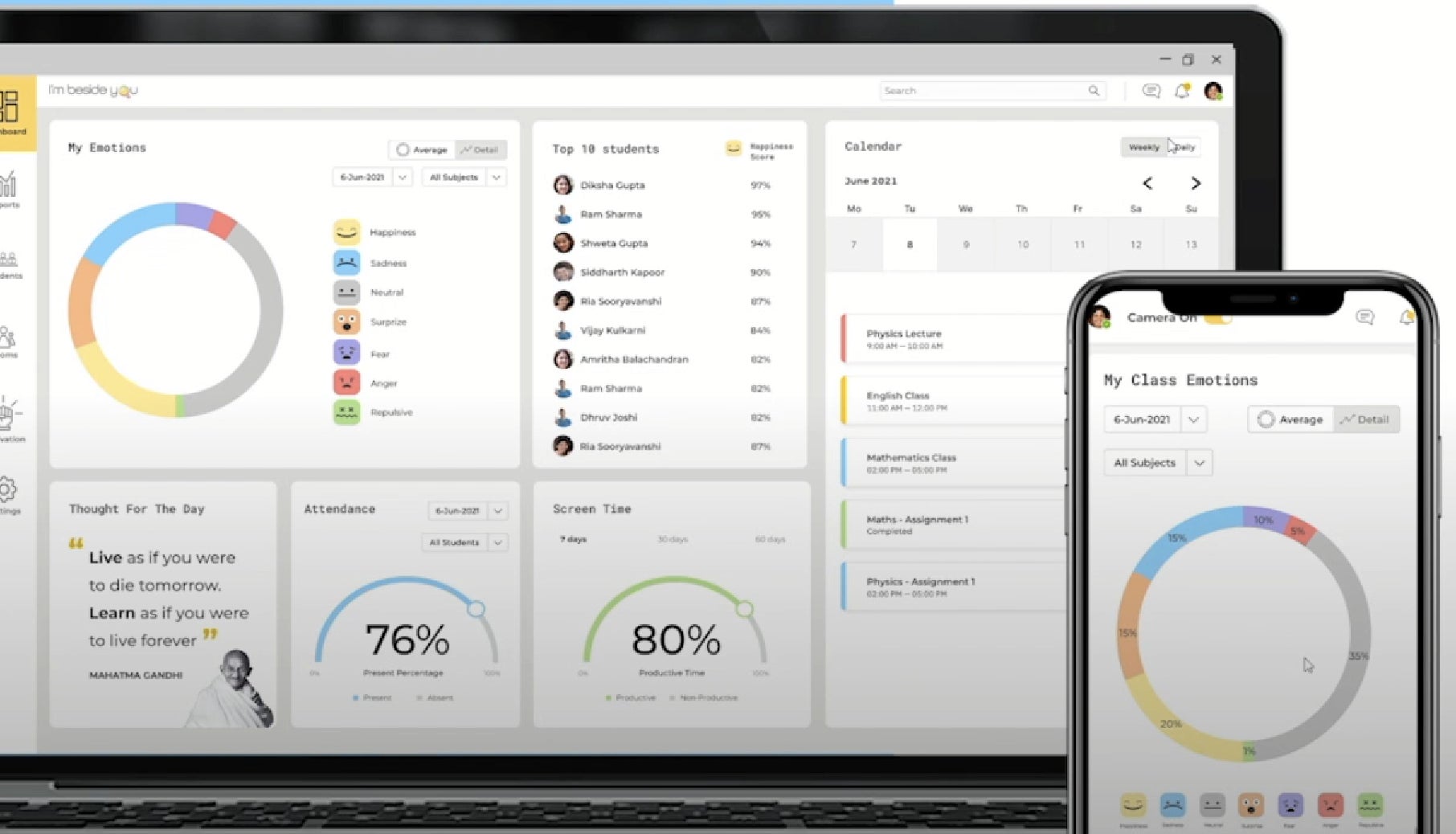 これまでの教育は、教員がどのように生徒と交流しているかはブラックボックスであり、そのやり方が比較研究される機会はごくわずかでした。I'mbesideyouのAI解析により、オンラインでの教員と学生の交流は分析結果として数値化され、どのような交流が学生の関心をひき、喜怒哀楽の感情を引き起こすのか、学生毎の反応のばらつきはどのようなものか、心理的安全性は担保されているのか、といったことがみえる化されます。