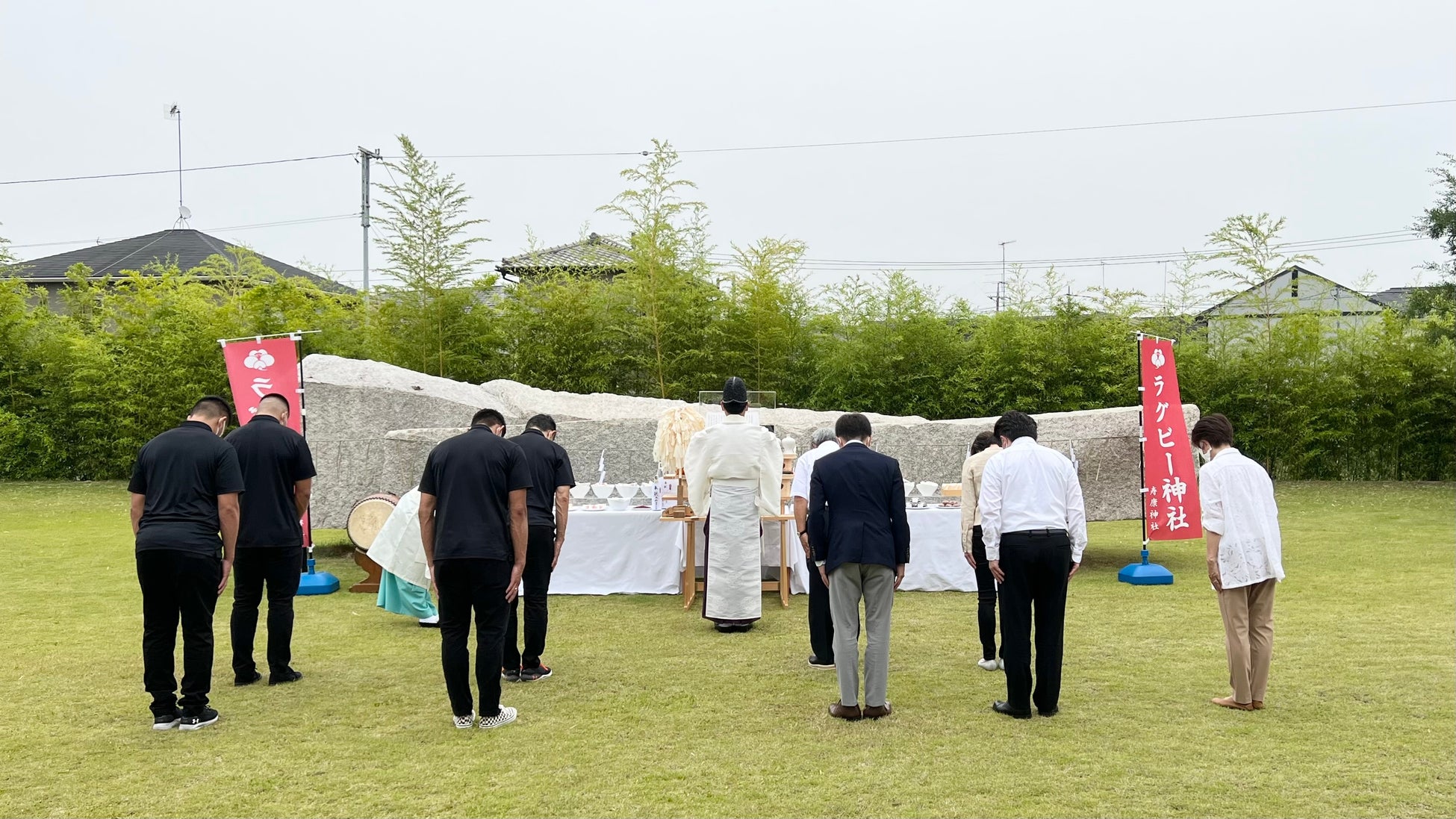 2022年6月18日(土)に梅林堂箱田本店のラグビー神社(寿康神社)にて大祭を斎行いたしました。今回は、埼玉パナソニックワイルドナイツの内田啓介選手、谷昌樹選手、布巻峻介選手にご参加頂き、地域の活性化と今後の更なる活躍を祈願致しました。