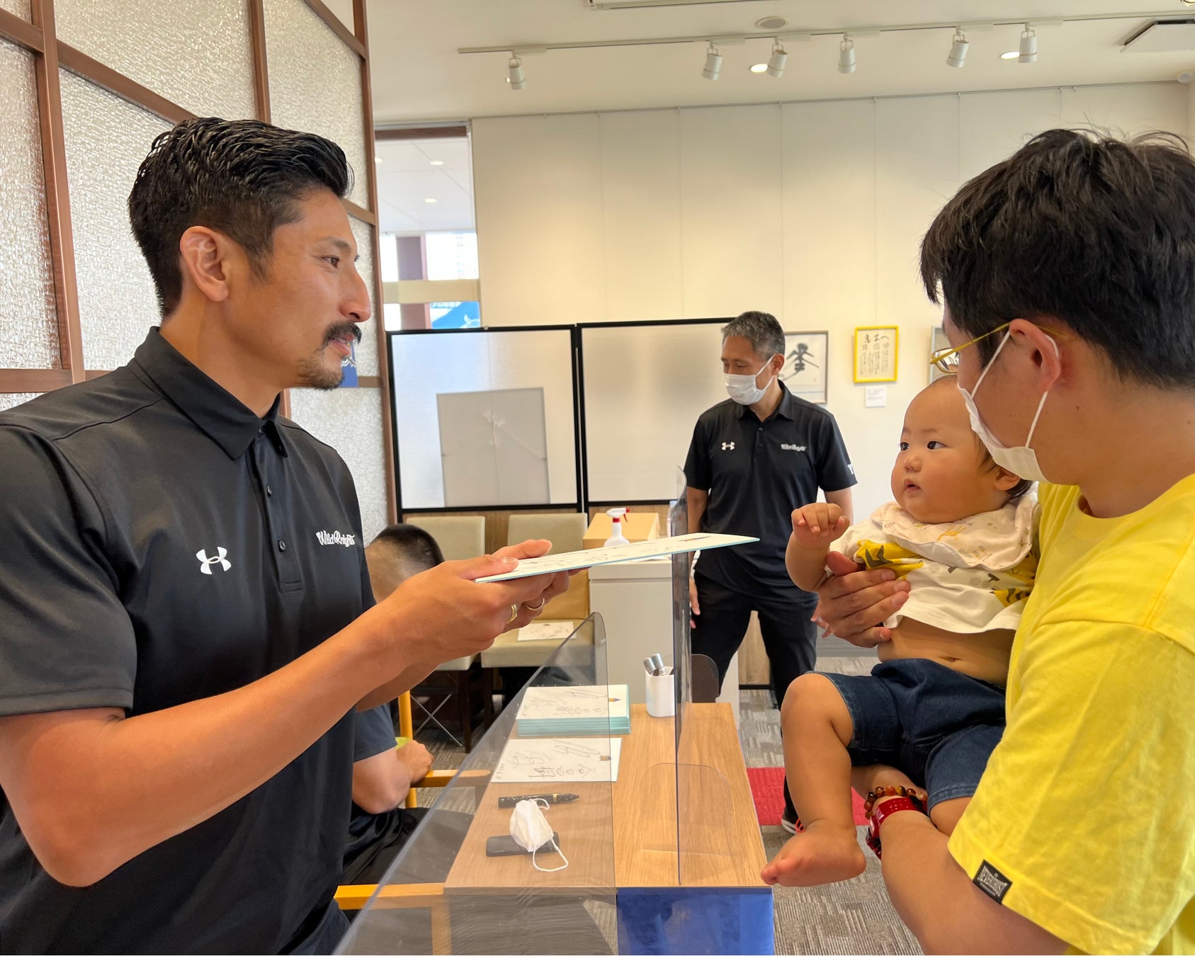 内田啓介選手、谷昌樹選手、布巻峻介選手によるサイン会を開催し、約300名の方にご参加頂きました。サイン記載時には、ご参加頂いた1人1人のお名前を記載して選手より直接お渡しをさせて頂きました。今回の取り組みを通じて、今後の地域におけるラグビー振興へ繋がればと願いを込めての開催でした。