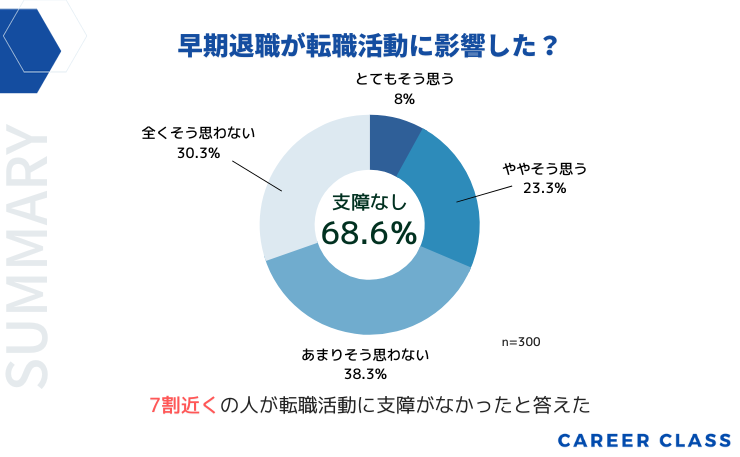 ・早期退職が転職活動に「影響しなかった」「あまり影響しなかった」人の割合は約70%という結果になりました。