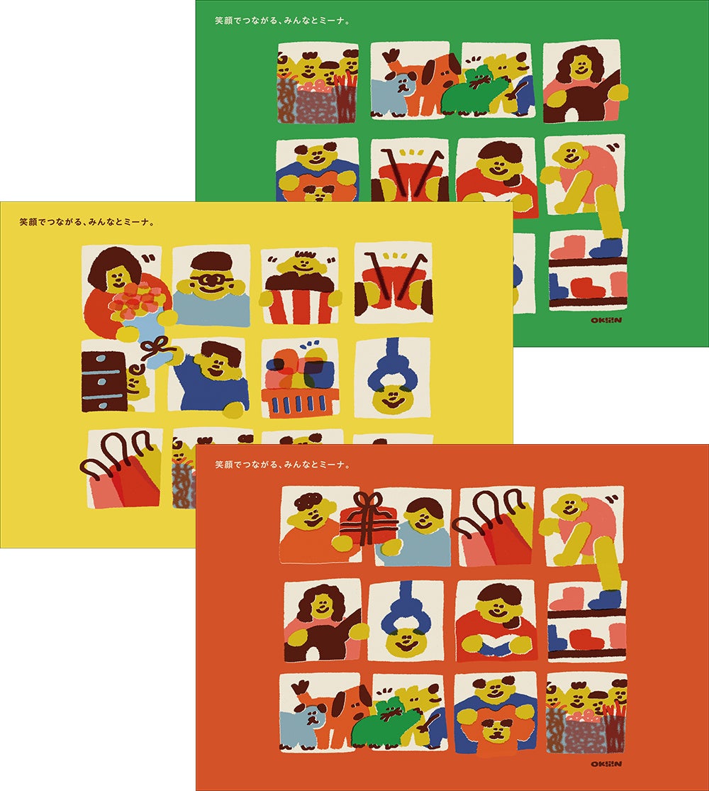 お客さまの笑顔が積み重なって施設全体の温かい雰囲気を作り出していることをカラフルで温かみのあるイラストと、「笑顔でつながる、みんなとミーナ」というメッセージで表現しました。