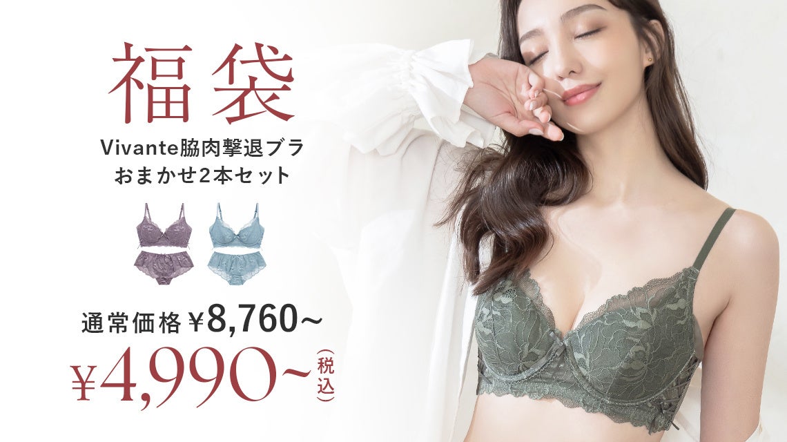 人気商品のvivante脇肉撃退ブラをはじめ、ノンワイヤーブラやナイトブラなど様々なラインナップの福袋をご用意いたしました。その中でも完売必至のオススメ福袋3選をご紹介いたします。年に1度のお得なこの機会に自分にぴったりの福袋を見つけてHAPPYな新年をお迎えください。