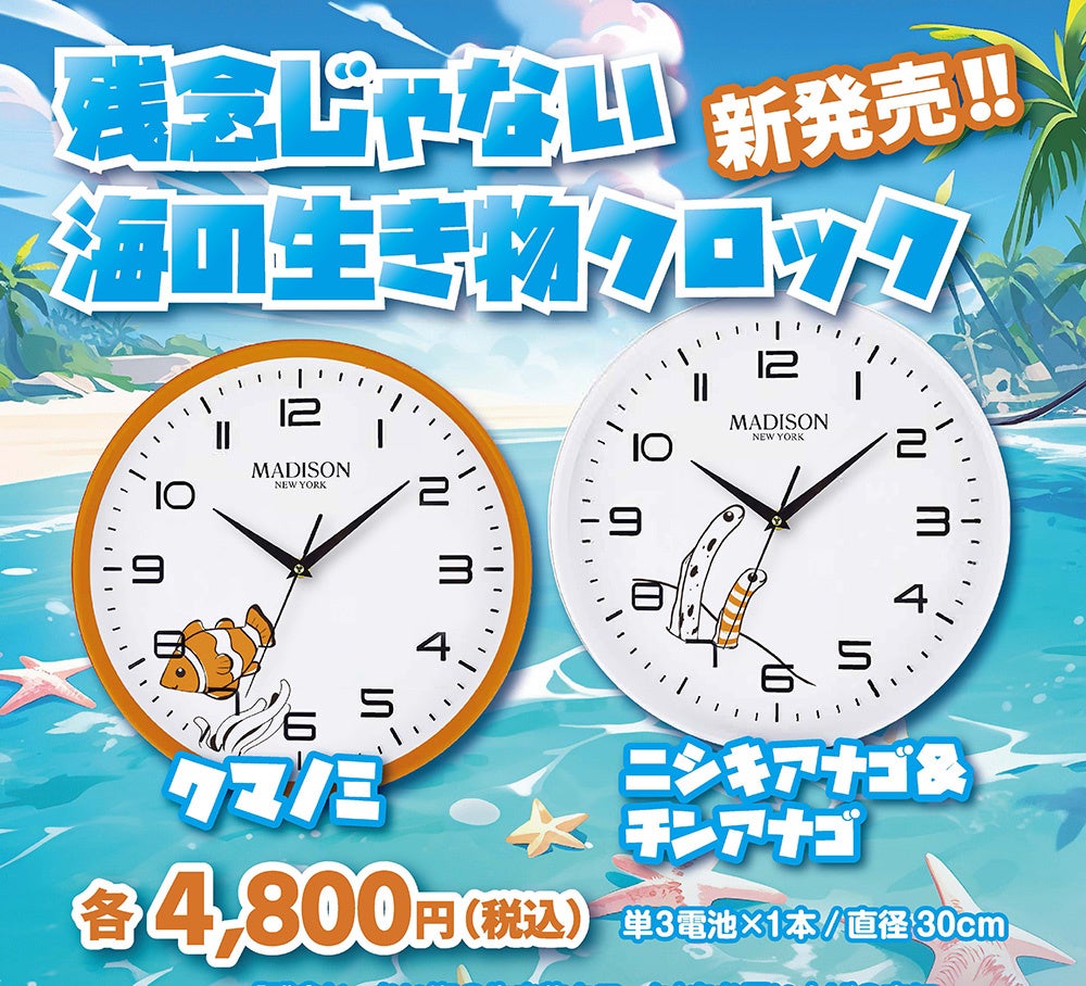 『マディソン・ニューヨーク』の大人気シリーズ「残念じゃない海の生きもの」から、夏にぴったりのクロックが登場♪