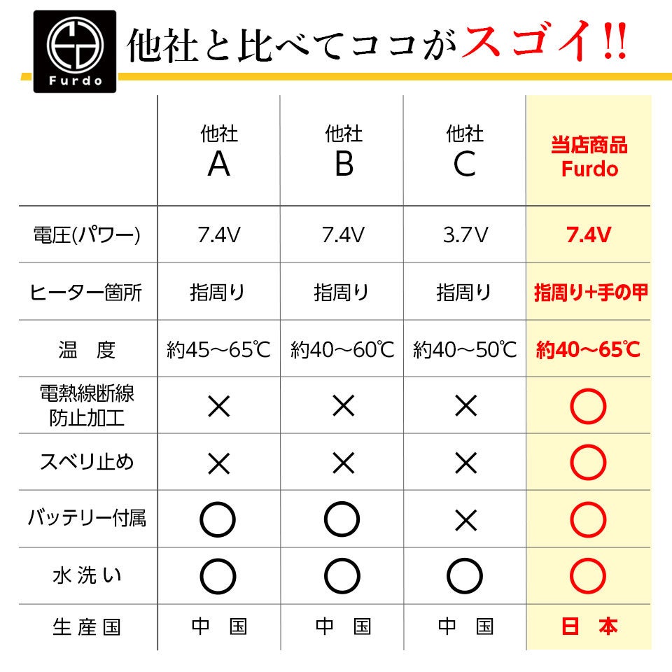 ・ヒーター箇所が指周り+手の甲と手全体を包み込むような温もり