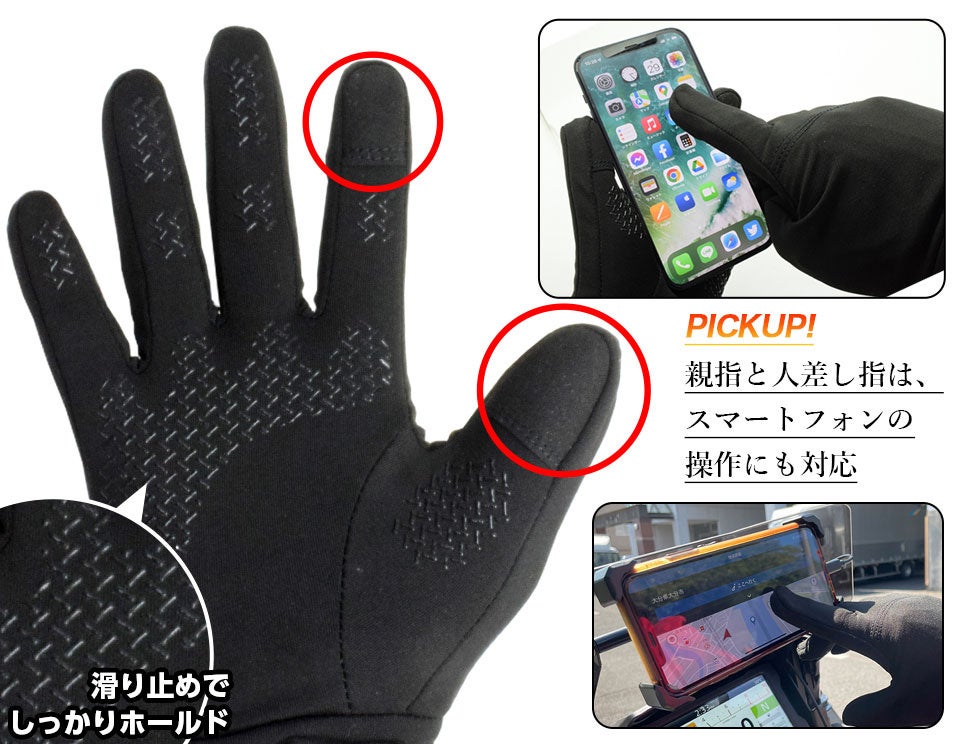 滑り止め加工付きの手のひら & スマホなどで画面タッチ操作可能な指先