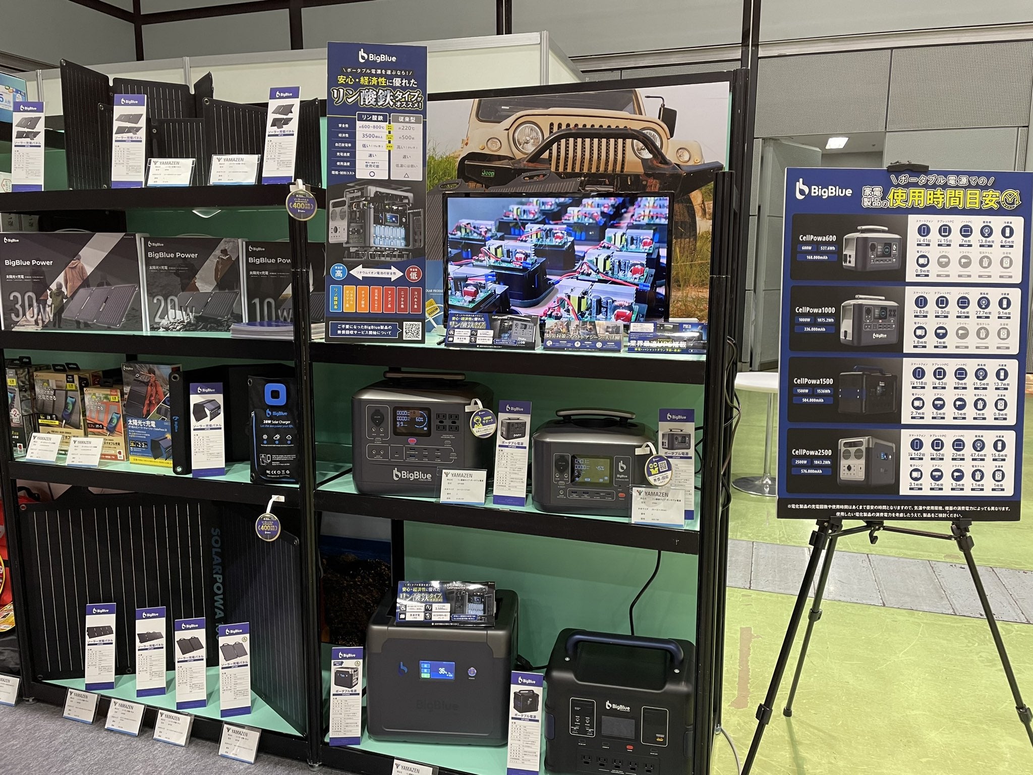 BigBlueは、停電時やアウトドアなど全く電気がないところで家電製品の使用を可能にするCELLPOWAシリーズポータブル電源は、燃料を使用しなくても事前に蓄電しておくことで、電気の無い屋外でAC電源やUSB電源などが取れる画期的な製品で、これまでにも多くのお客様にご愛用頂いております。そしてCELLPOWAシリーズポータブル電源をいつでもどこでも充電できるようにETFE新素材で製造するソーラーパネルを片手で持ち運ぶことができるコンパクトサイズに開発し、更には車での移動中にも充電ができるようにシガーソケットから充電することができます。我々が作り出すオフグリッドソーラー製品はアウトドアレジャーの分野だけでなく、自然災害時の電源供給としても非常に注目されており、『防災製品等推奨品』などにも選ばれております。