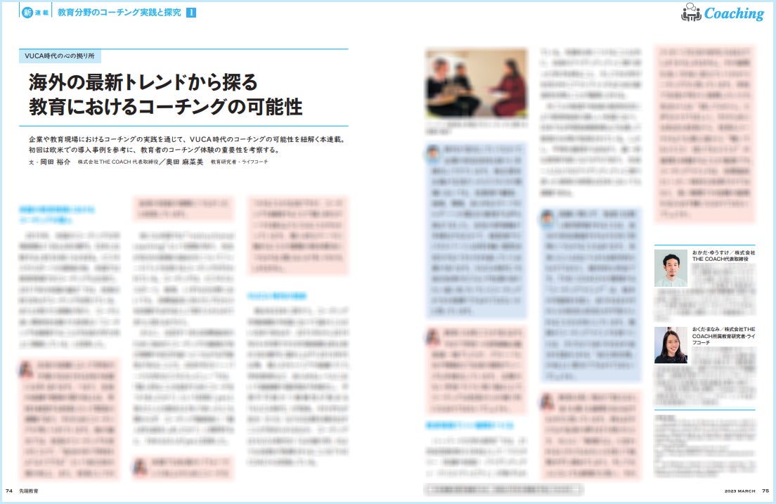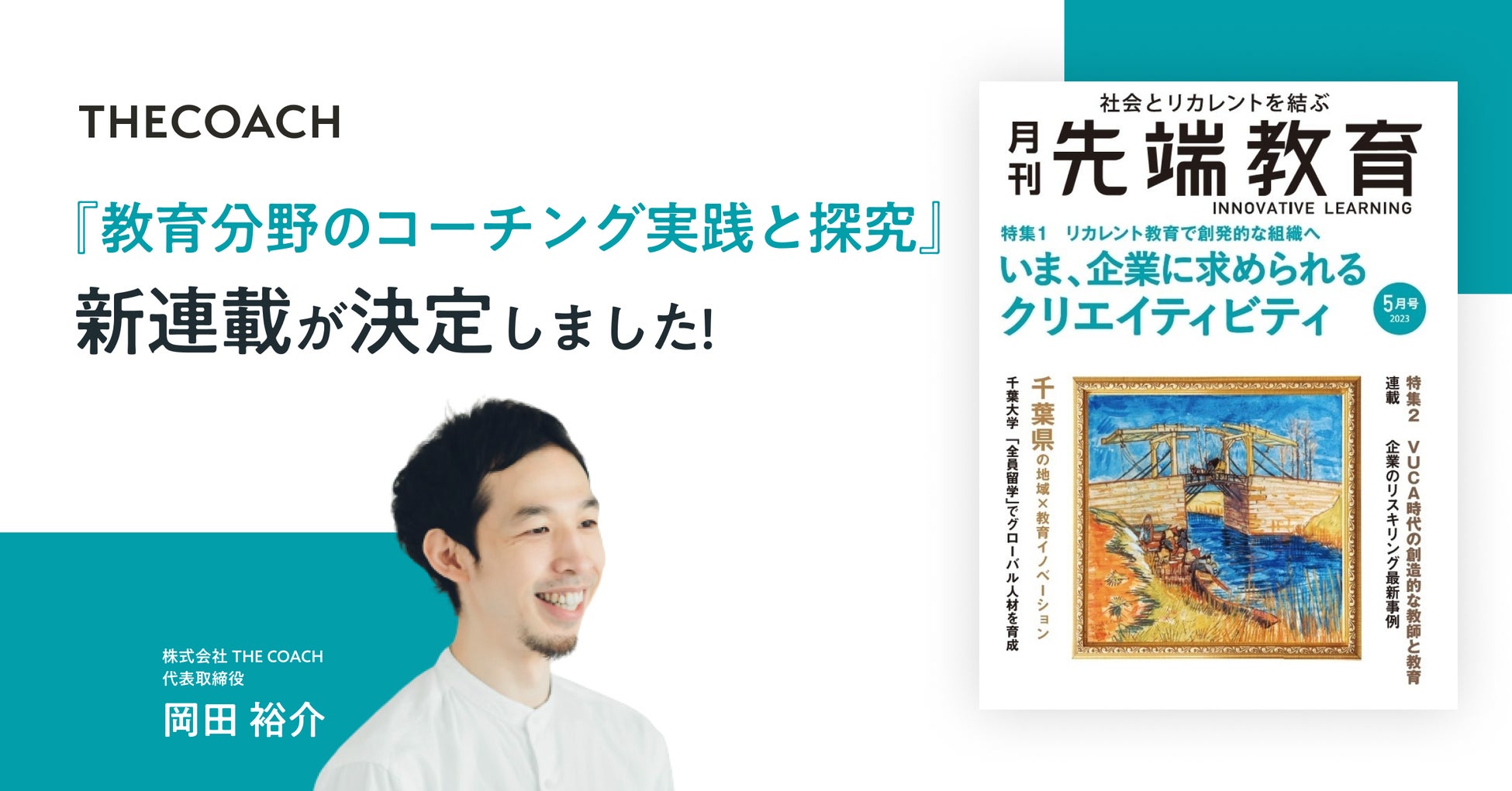 2023年5月号(4月1日発売)より、隔月連載を予定。初回は、THE COACH共同代表取締役 岡田裕介と教育研究者・ライフコーチ 奥田麻菜美氏が、欧米での導入事例を参考に、教育者のコーチング体験の重要性を考察します。