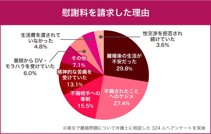 慰謝料を請求した理由は「離婚後の生活への不安」「不倫されたことへのケジメ」