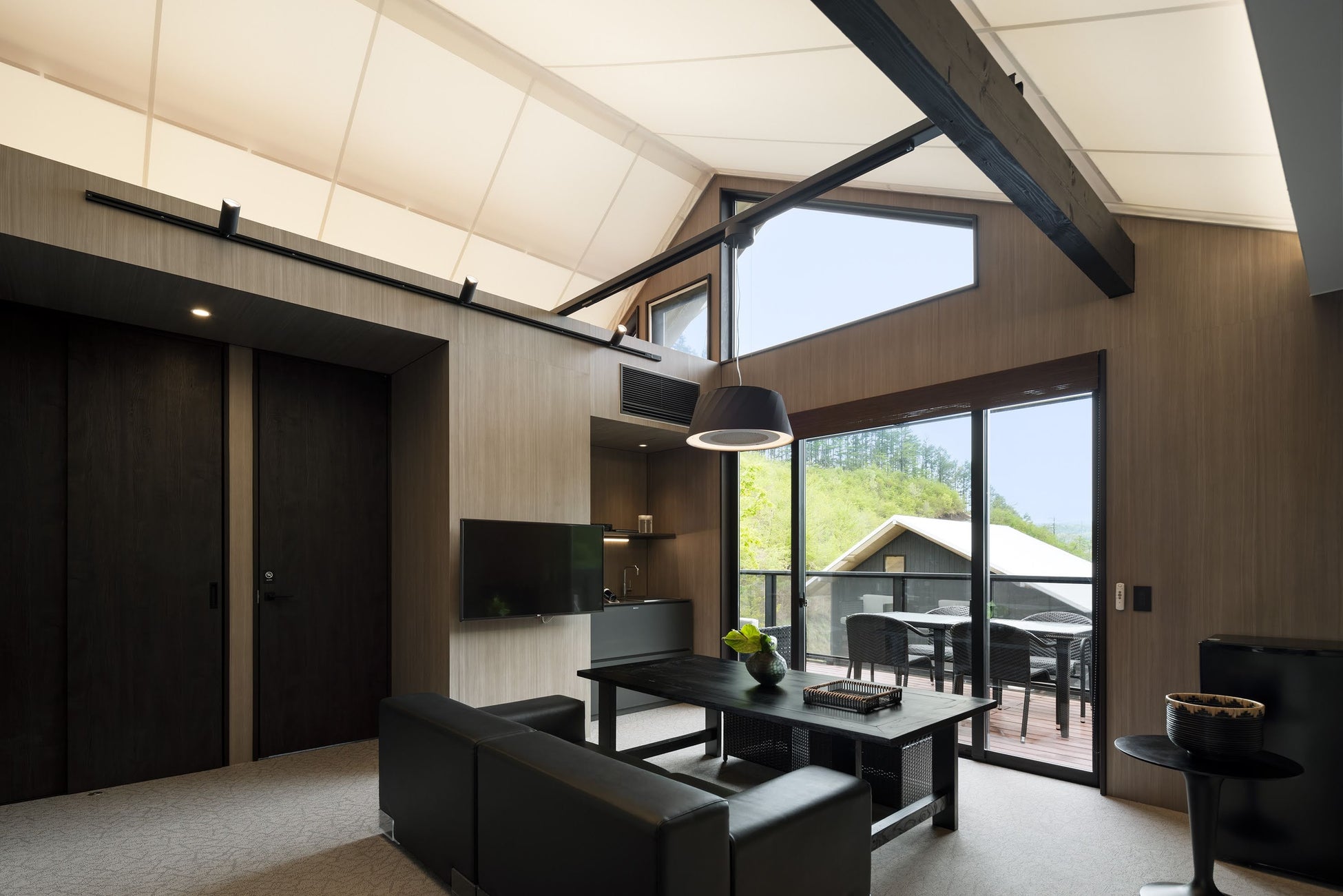 世界的デザイナー・コシノジュンコ氏の監修により誕生した「あさま空山望」は、北軽井沢の大自然の中に佇む一棟貸しヴィラリゾートです。60,000㎡を超える広大な敷地には、全16棟の宿泊ヴィラやレストラン「天空柁イニング」、温浴施設「天空スパ」、ラウンジ、ドッグランを贅沢に配置。全棟からは雄大な”浅間山ビュー”の絶景を一望でき、大自然に溶け込んだグランピングのような空間で愛犬も一緒に非日常を堪能いただけます。まるで別荘を訪れたかのようなプライベートなひと時をお過ごしください。