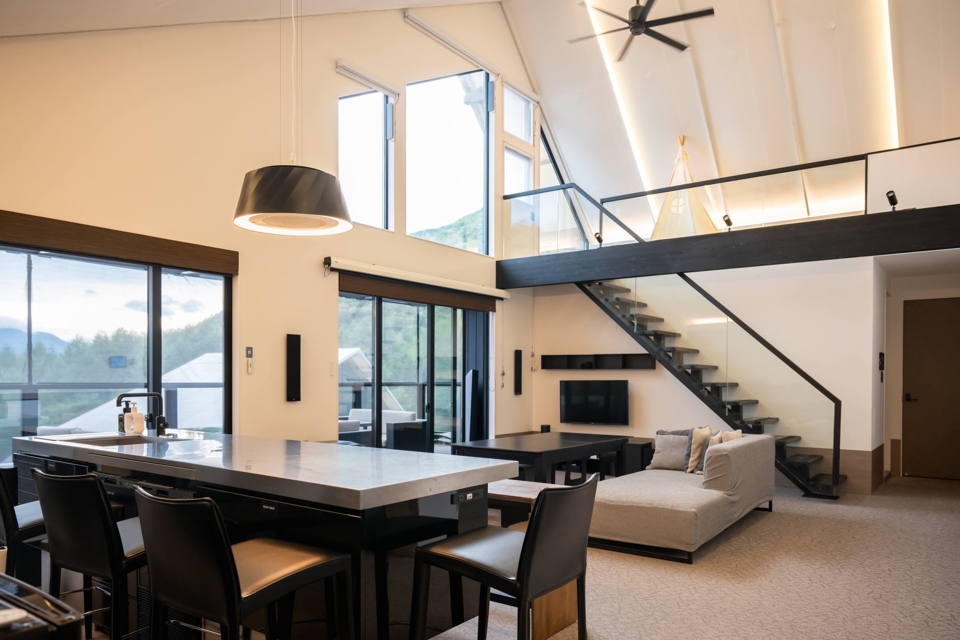 「プレジデンシャルスイート ポラリス」は最大8名様までご宿泊可能な112㎡の広々としたロフト付き客室のため、親子三世代を含む大人数のご家族でも余裕をもっておくつろぎいただけます。