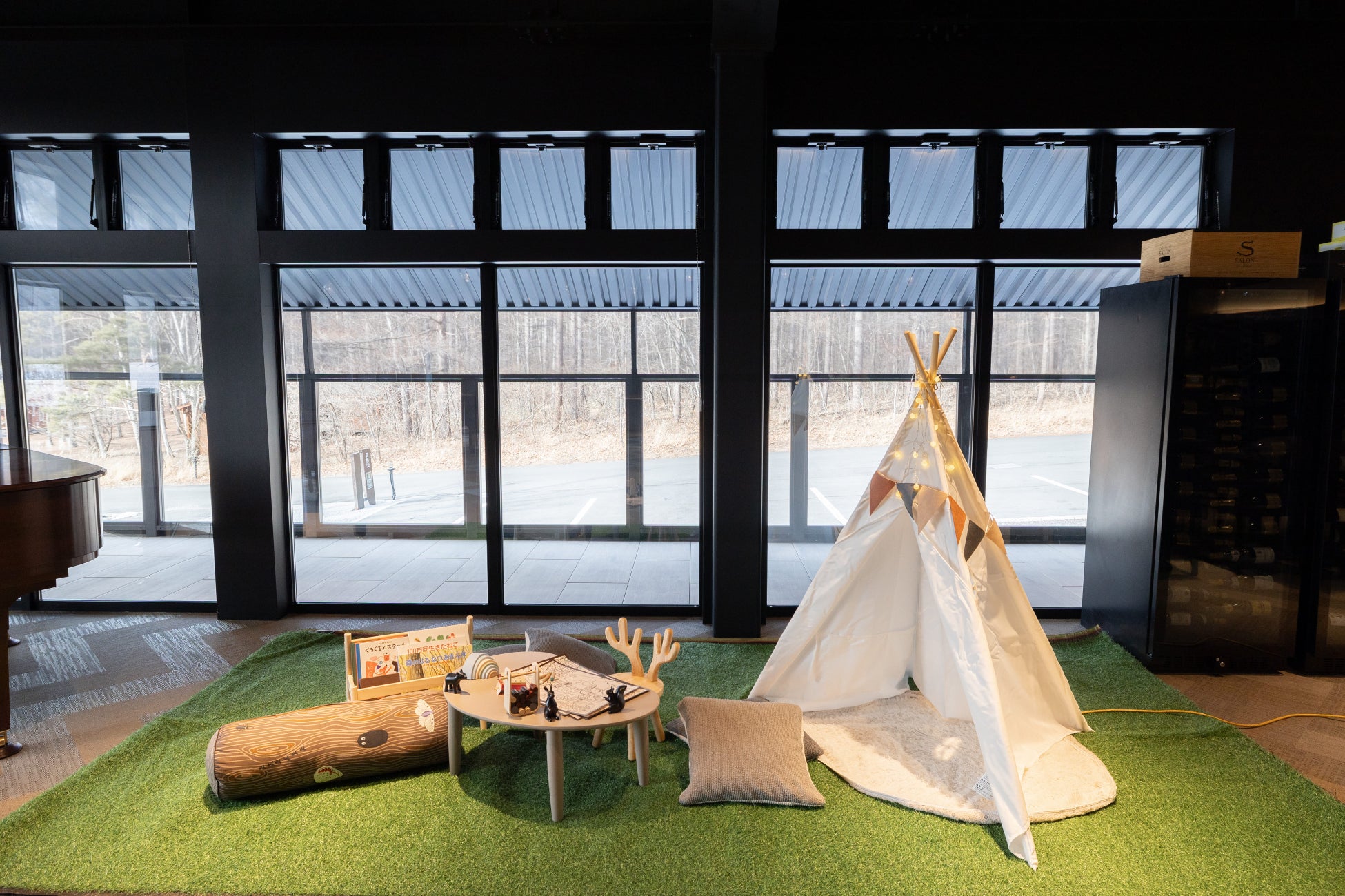 また、この度ヴィラ敷地内のレストラン「天空柁(ダ)イニング」に、キッズエリアを新設いたします。想像力を働かせながら楽しんでいただける北軽井沢にちなんだ絵本やキッズテント、おもちゃをご用意し、天候に左右されることなくお子様がお楽しみいただけるようになりました。