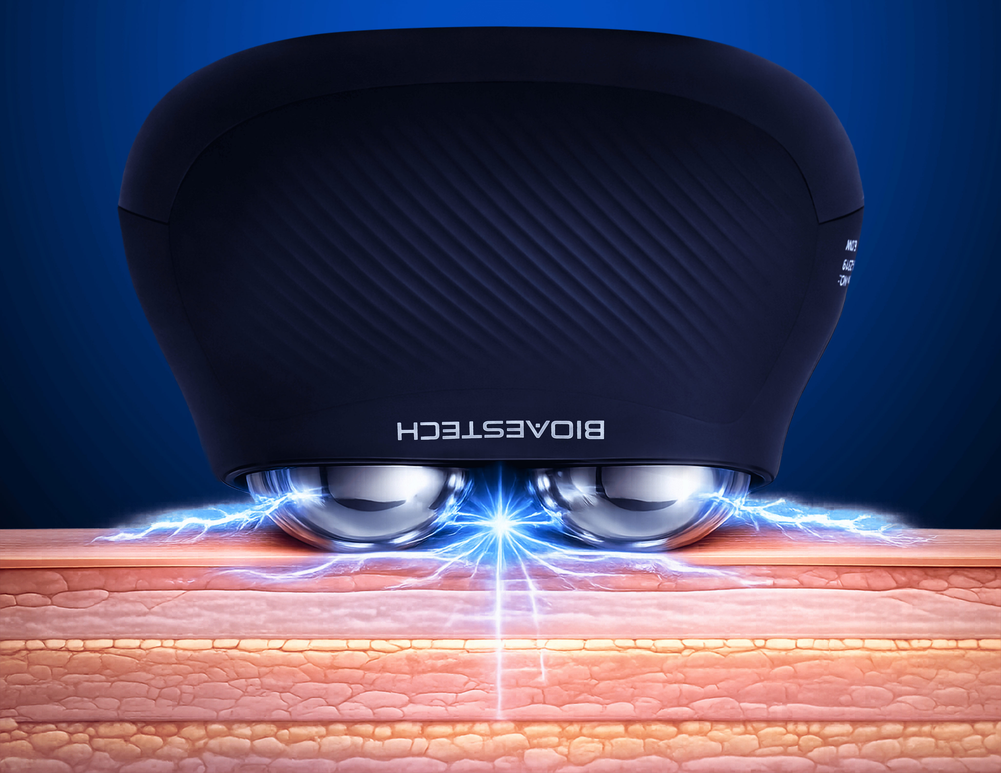 2つの球体が肌を物理的につまむ独自構造を採用。