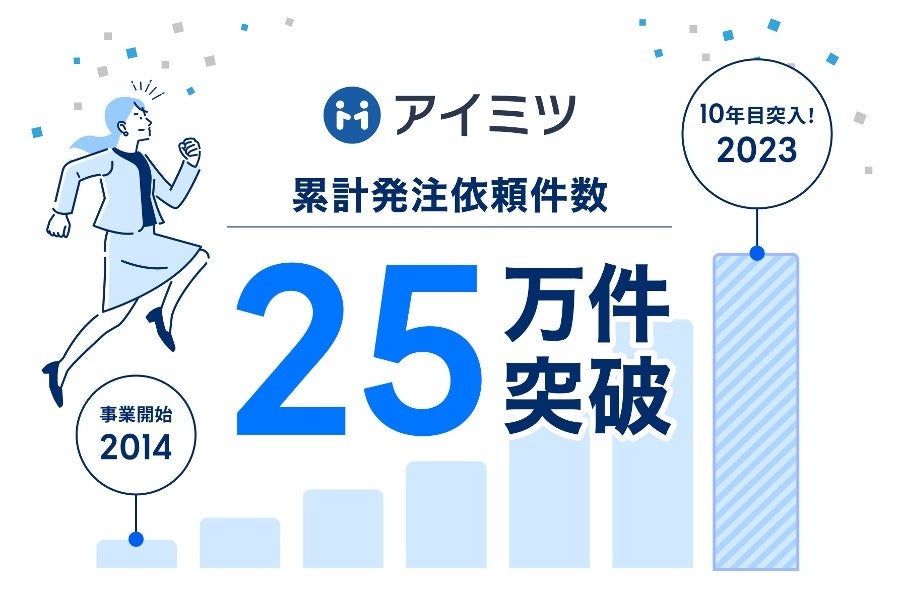 2014年のサービス開始以来、発注企業、受注企業それぞれの利用者数を順調に伸ばし、コロナ過によるビジネスマッチング需要の高まり等を受け、この度、累計発注依頼数が25万件を突破いたしました。