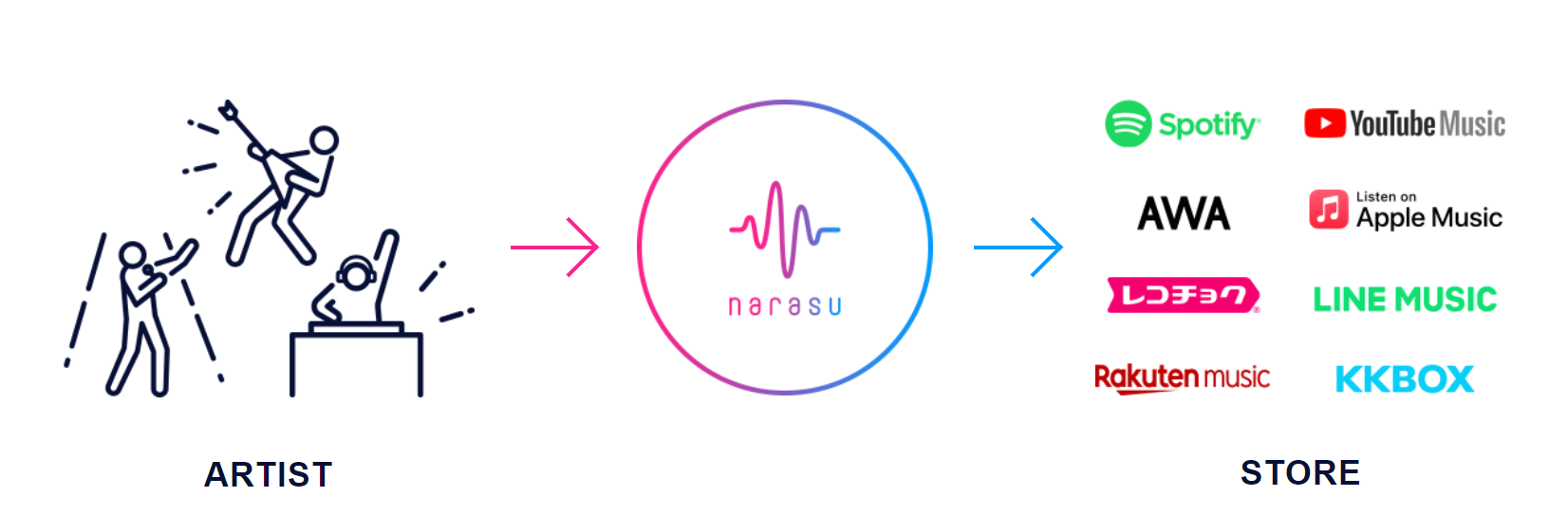 2020年12月8日、国内初のサブスク型音楽配信代行サービス「narasu(ナラス)」のサービスを開始。
