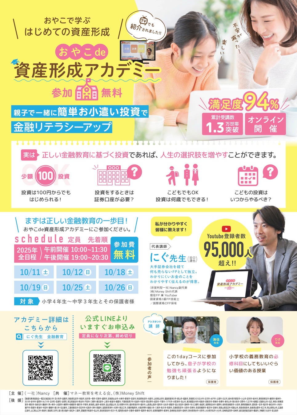 【全国3,082の小中学校にチラシ100万枚配布!】義務教育にほしい!と話題のマネー講座「おやこde資産形成アカデミー」第14期の募集を開始しました!