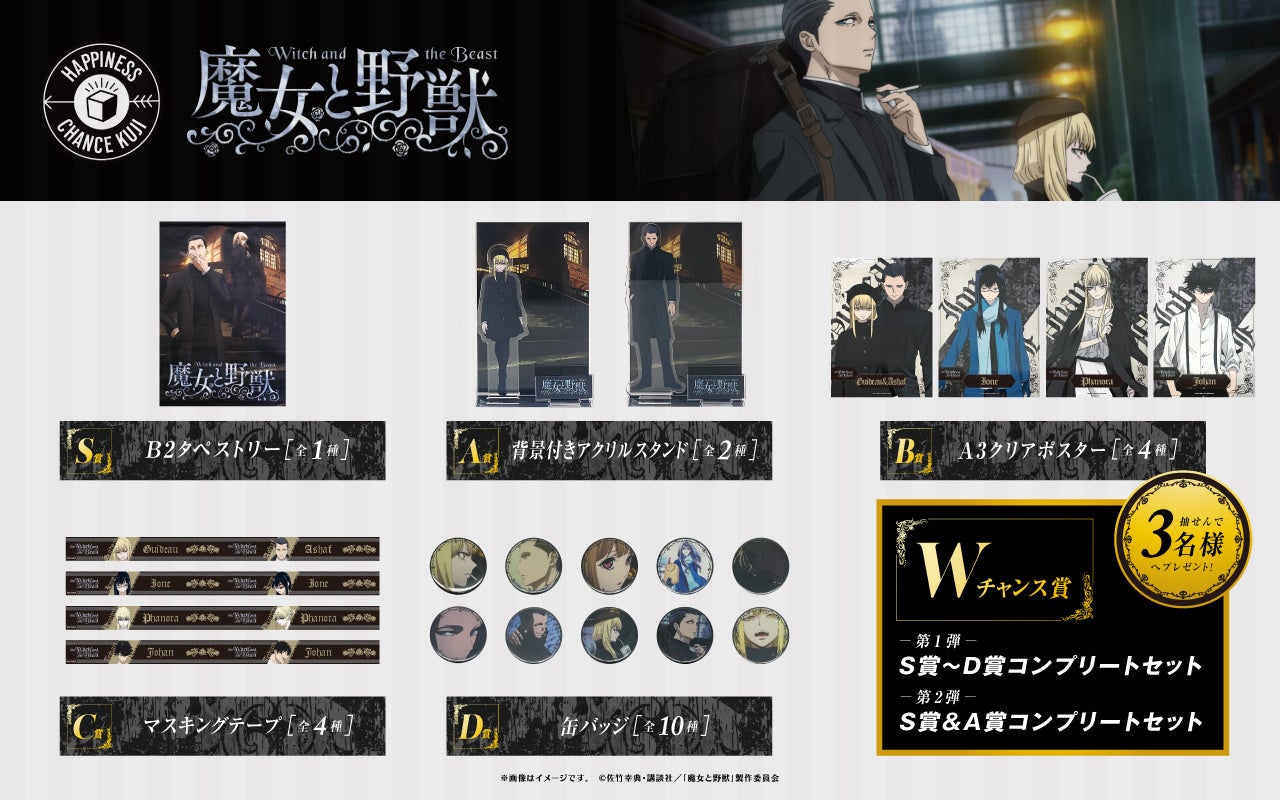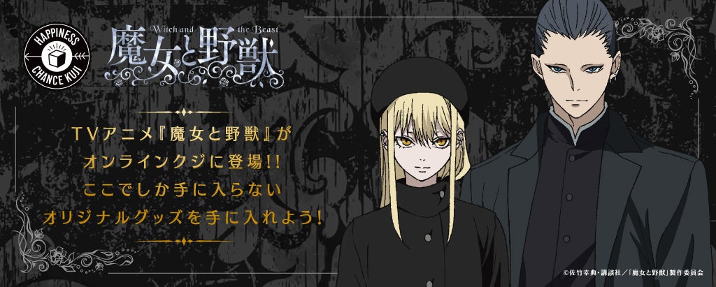 株式会社アルテミス(本社:東京都港区、代表取締役:泉浩樹)は、ハズレなしのオンラインくじサービス「ハピネスチャンスクジ」(通称:ハピチャンクジ)にて、2024年2月29日(木)からTVアニメ『魔女と野獣』を1回770円(税込み)で販売開始いたします。