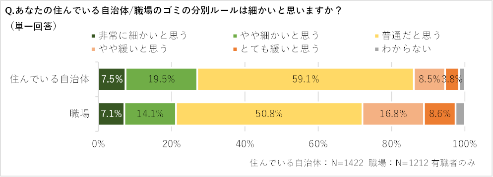 ・ゴミの分別ルールは、住んでいる自治体よりも職場の方が「緩い」と感じている人が多い。