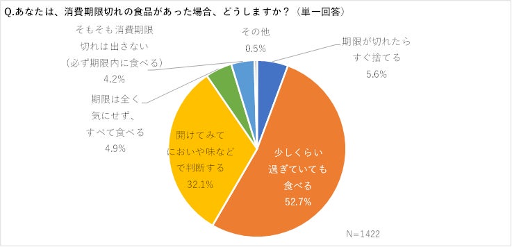・消費期限切れの食品は、約9割が期限を過ぎても食べると回答。