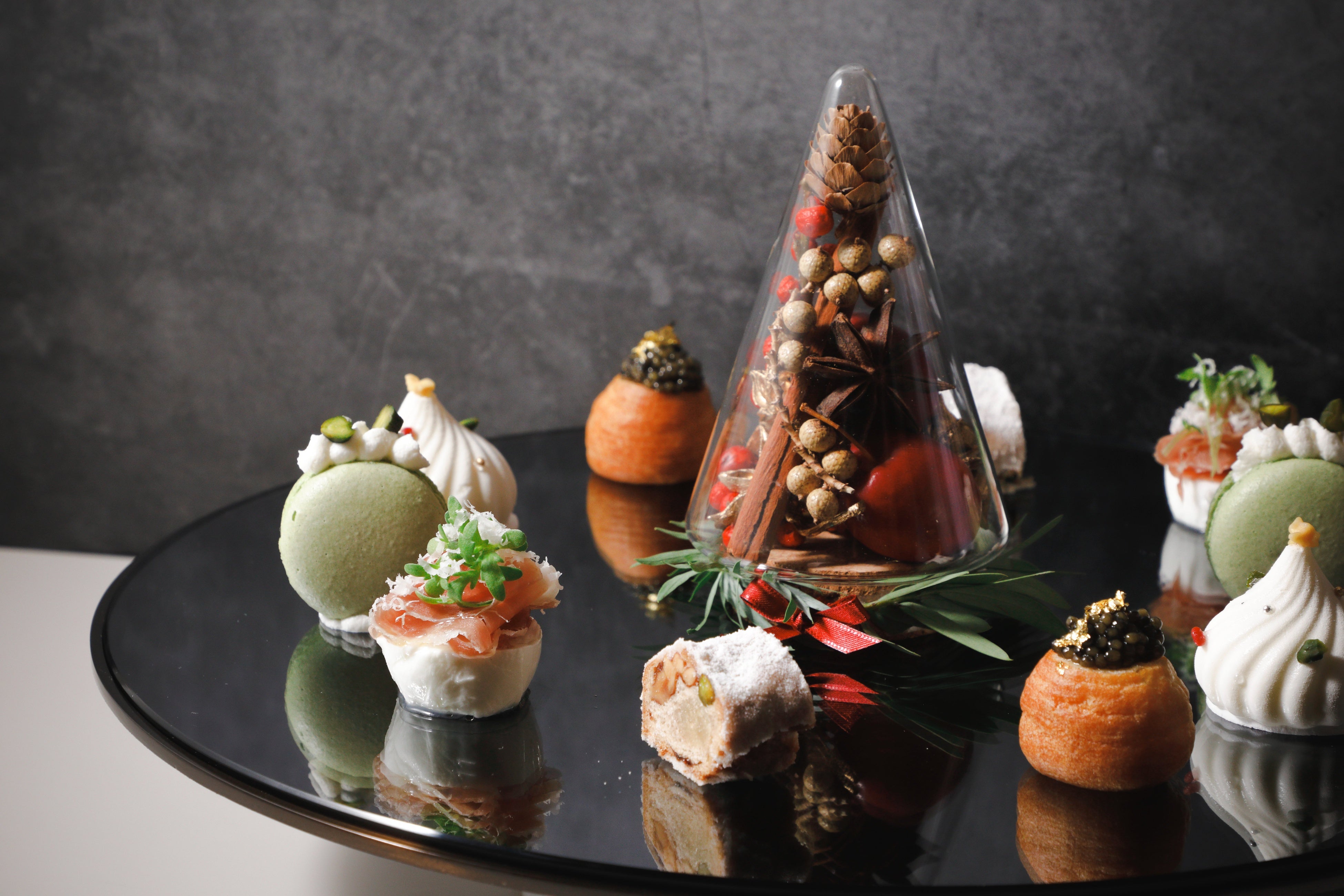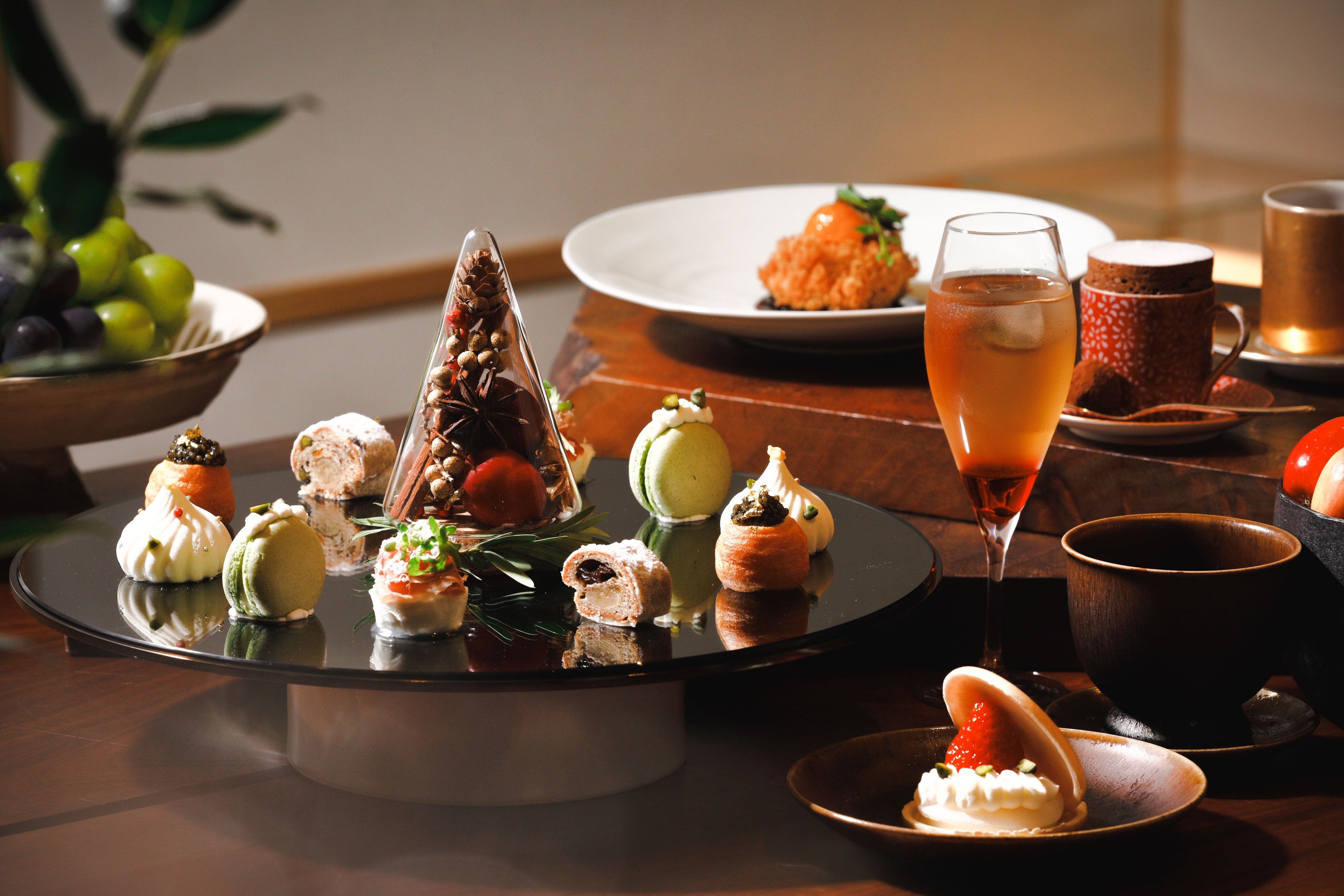コース仕立てで提供し、一品ずつソムリエが厳選したジャパニーズティーとのペアリングでお楽しみいただくアフタヌーンティーは12月1日(金)からの「クリスマス フタヌーンティー」よりブロンズミラーをあしらったティースタンドで提供いたします。「ザ リビングルーム」の黄金色の内装が放つ柔らかな光を反射しながら、美しいスイーツやセイボリーを映しだすティースタンドでより一層洗練され、フォトジェニックになったアフタヌーンティーをお楽しみください。12月25日(月)まではクリスマスバージョン、26日(火)から1月3日(水)まではニューイヤーズホリデーシーズンのプレゼンテーションでお届けします。