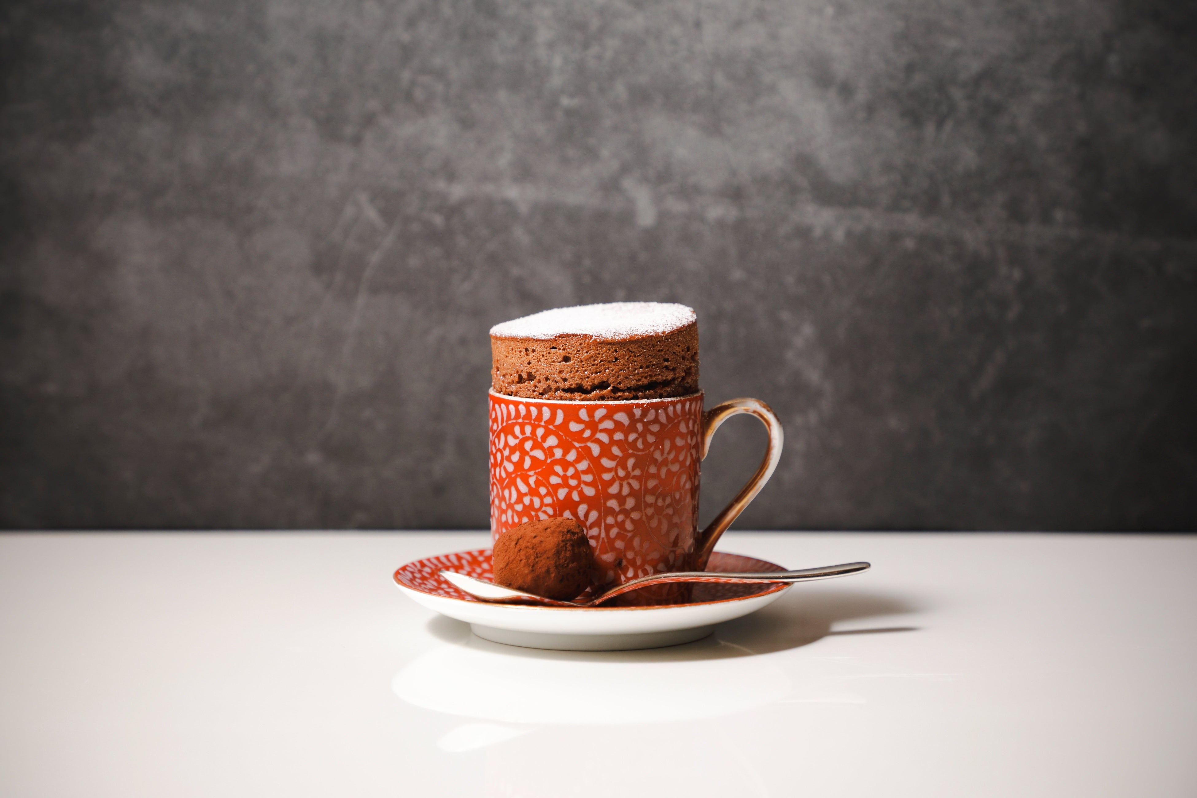 特別な焙煎を行っているためカカオやチョコレートのニュアンスを含み、スフレとのマリアージュを楽しむことができます。