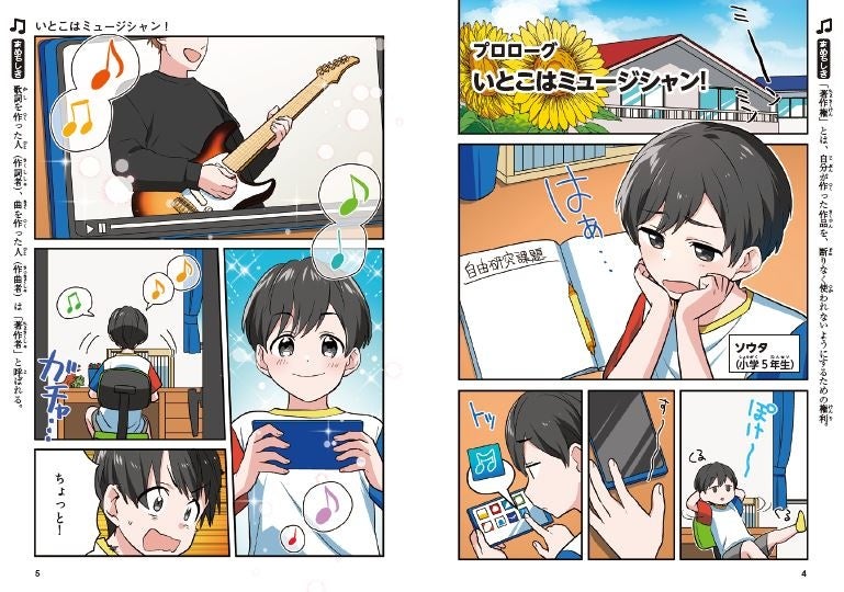 本書は、漫画を通じて楽しく音楽著作権を学べる内容となっており、図や解説記事のほか、JASRAC委託者である作曲家・林ゆうきさんへのインタビューなども掲載しています。公益社団法人日本PTA全国協議会の推薦を受け、全国の小学校(公立、私立)に約21,500部、公立図書館に約3,200部、児童館に約800部、合計約25,500部を寄贈します(非売品)。