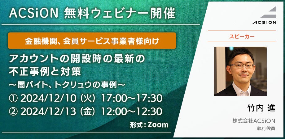 【12/10、13開催 無料ウェビナー】金融機関、会員サービス事業者様向け アカウントの開設時の最新の不正事例と対策