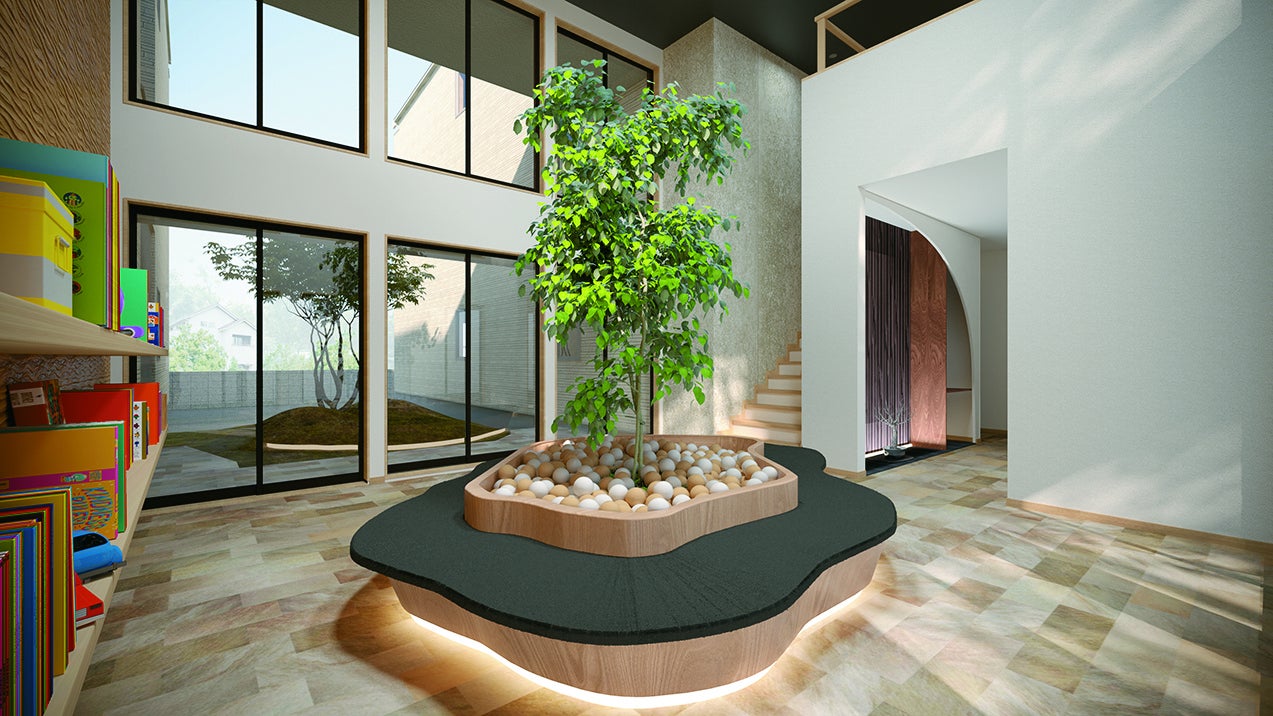 - 共用エントランスに子ども広場やベビーカー置き場を設けて、入居者同士のふれあいや交流を促進