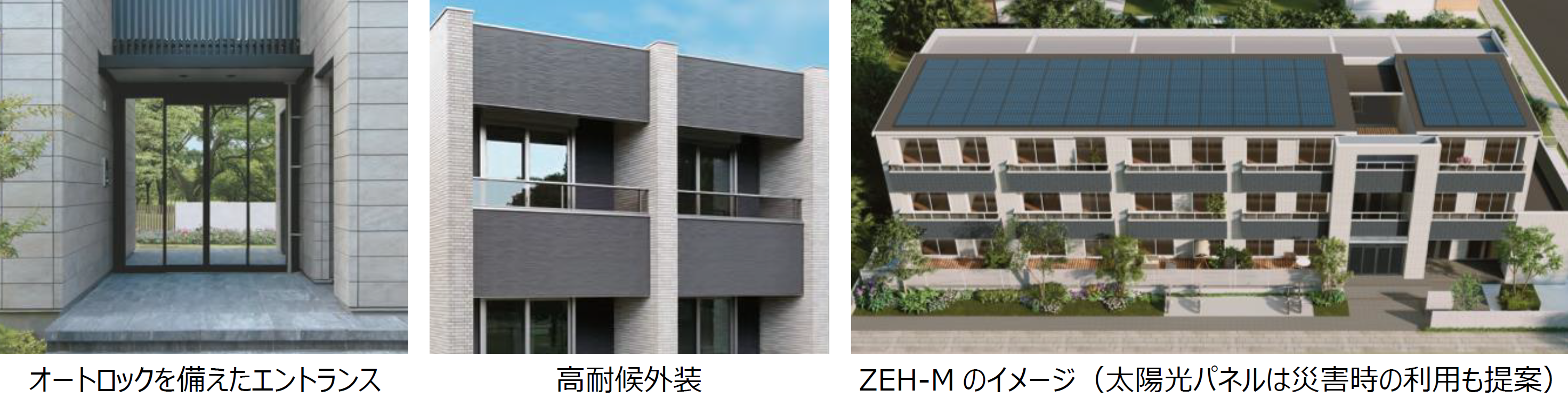 1.優れた安全性や耐久性などに加えて、脱炭素社会の実現に貢献する賃貸マンション