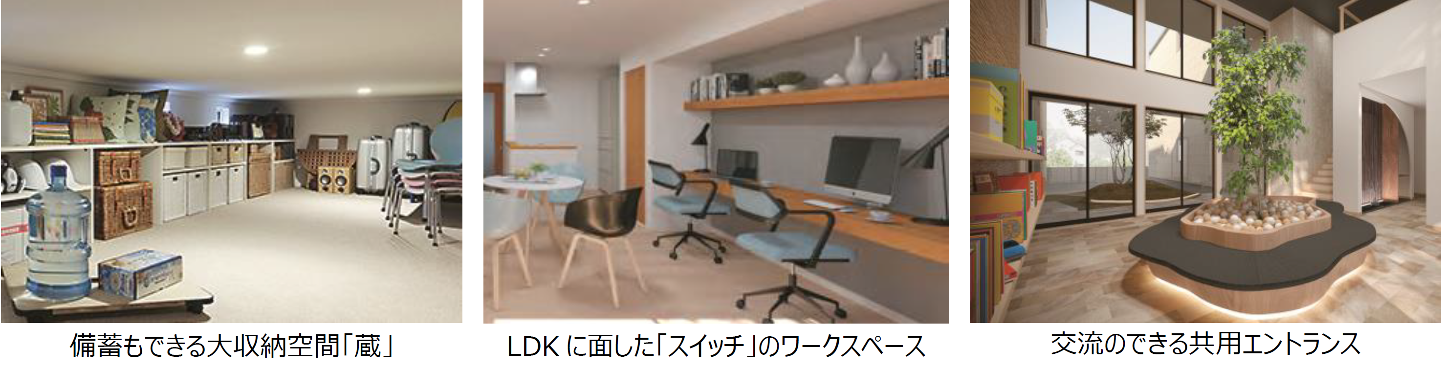 - 大収納空間「蔵」やフレキシブルな空間設計で多様化するライフスタイルに対応