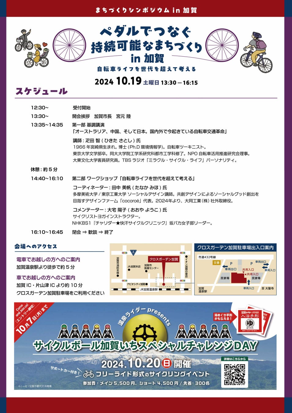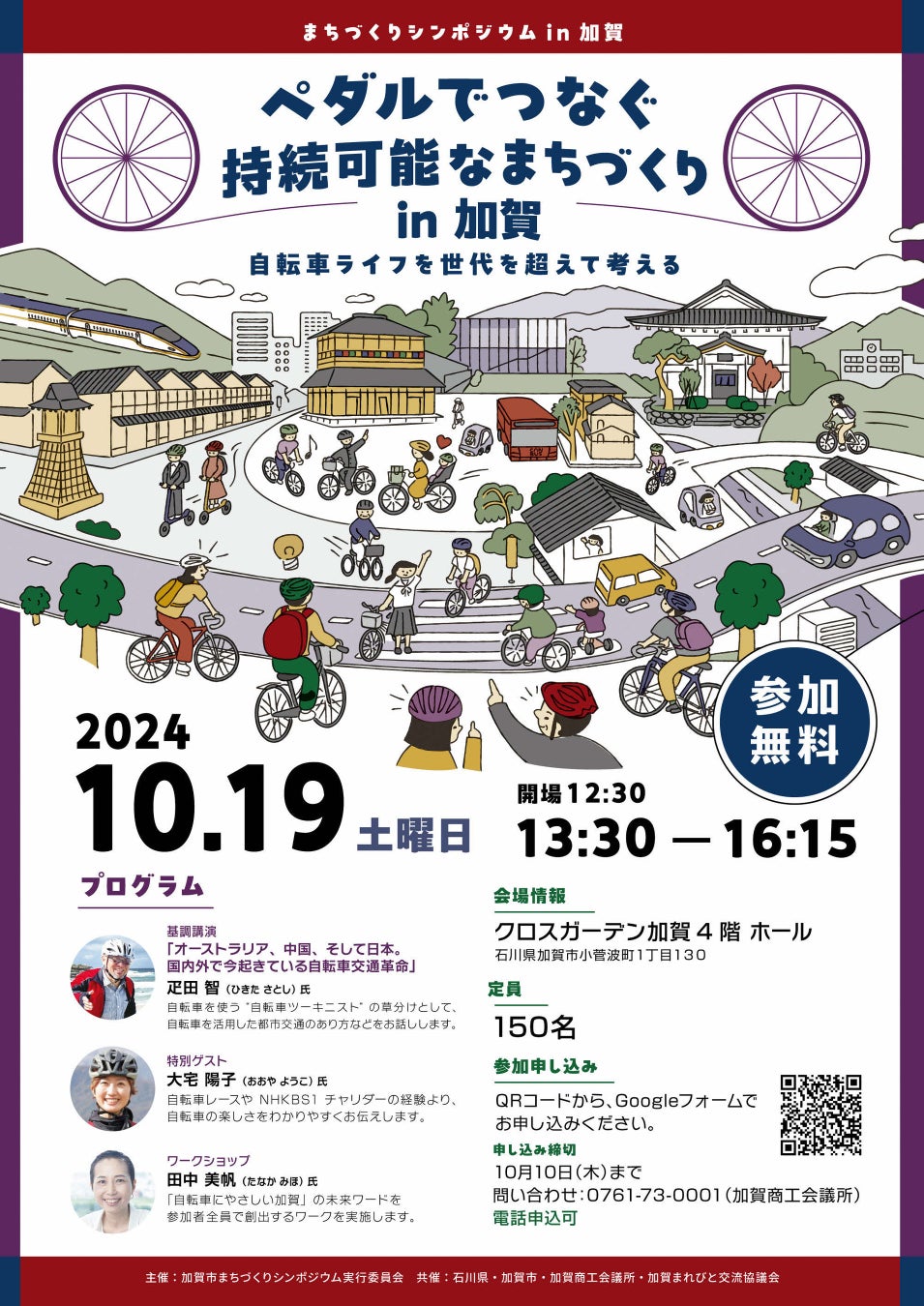 [ペダルでつなぐ持続可能なまちづくりin加賀] - [加賀市まちづくりシンポジウム実行委員会(事務局:加賀まれびと交流協議会)]主催、[2024年10月19日(土)13:30~16:15]に開催