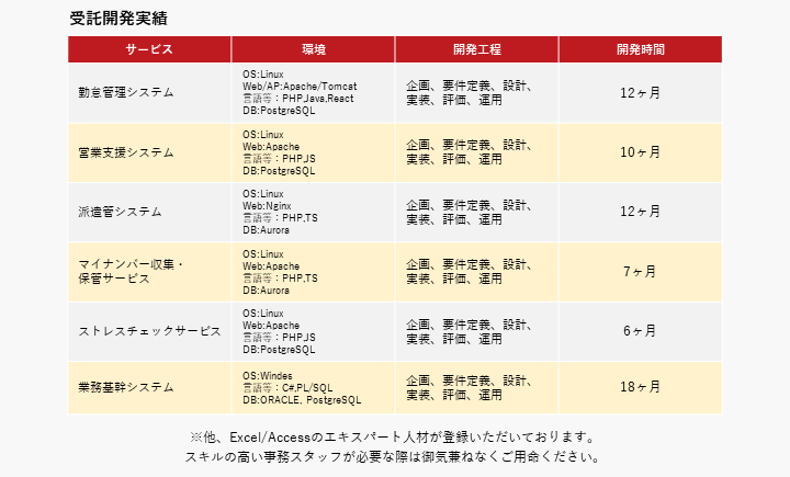 ITエンジニアの育成において豊富な実績を持つITスクールと提携することで、人件費を抑えた初級エンジニアのスキルも保証しています。