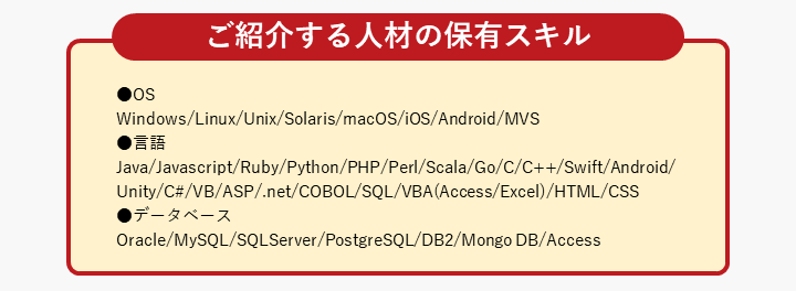コストを抑えた初級スキルから、経験豊富なベテランスキルまで、ユニット型派遣も可能
